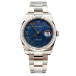 Il Rolex Datejust 116200 rappresenta un perfetto equilibrio tra eleganza e funzionalità. Con la sua cassa da 36 mm in acciaio inossidabile, questo orologio emana una presenza distintiva al polso, mentre il quadrante blu, impreziosito da indici romani, conferisce un tocco di sofisticatezza senza tempo. La ghiera liscia esalta la pulizia del design, rendendo ogni dettaglio un vero capolavoro artigianale. Il bracciale Oyster, noto per la sua comodità e robustezza, assicura una vestibilità impeccabile che si adatta a ogni occasione, dal business a eventi eleganti. Con la chiusura déployante, il Rolex Datejust garantisce la massima sicurezza e praticità, unendo così il piacere estetico a una funzionalità senza pari. Indossare questo orologio significa abbracciare un simbolo di stile e prestigio, capace di resistere al passare del tempo e alle tendenze efimere.