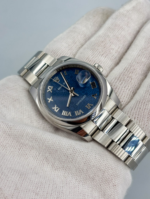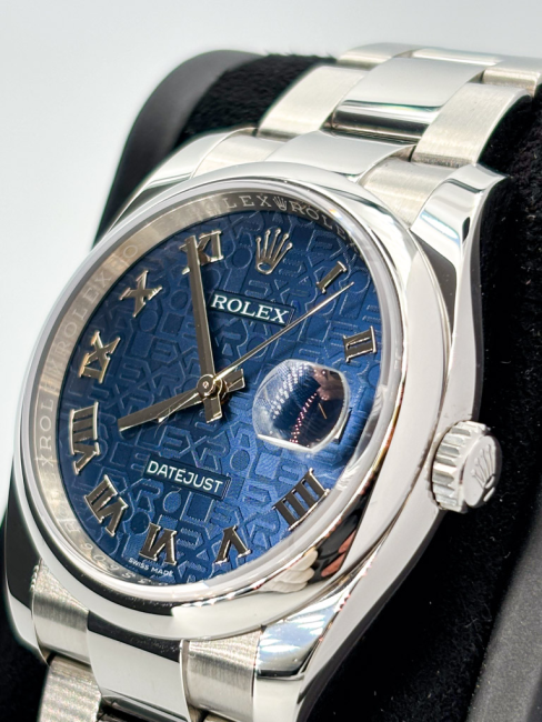 Il Rolex Datejust 116200 rappresenta un perfetto equilibrio tra eleganza e funzionalità, incapsulando l’essenza di un orologio di lusso senza tempo. Con una cassa di 36 mm in acciaio inossidabile, questo segnatempo è progettato per adattarsi comodamente al polso, mentre la ghiera liscia aggiunge un tocco di sobria raffinatezza. Il quadrante blu, con indici romani che richiamano la classicità, non solo affascina ma offre anche una leggibilità impeccabile. Il bracciale Oyster, simbolo di robustezza e versatilità, è dotato di una chiusura déployante che assicura una vestibilità sicura e confortevole. Ogni dettaglio di questo orologio è concepito per rispondere alle esigenze di un pubblico sofisticato, rendendolo un complemento perfetto per ogni occasione.