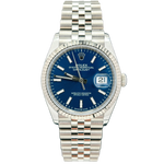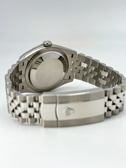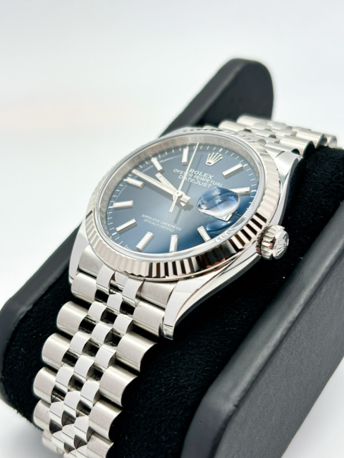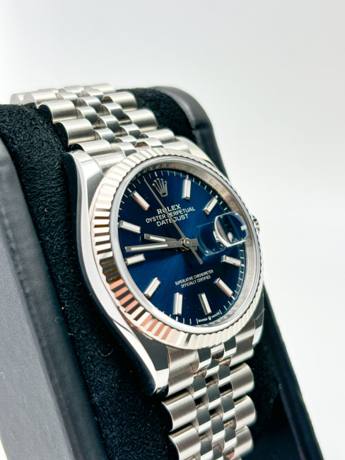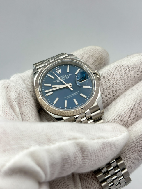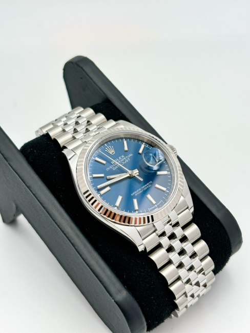 Il Rolex Datejust 126234 incarna l'essenza dell'eleganza senza tempo, trasformando ogni momento in un'occasione speciale. Con una cassa di 36mm realizzata in acciaio inox di alta qualità, questo orologio combina robustezza e raffinatezza, mentre la ghiera zigrinata in oro bianco aggiunge un tocco di lusso distintivo. Il bracciale Jubilee, con il suo design classico e la sua versatilità, si adatta perfettamente a ogni polso, rendendo questo modello un alleato impeccabile per ogni occasione, che sia un incontro di lavoro o una cena elegante. Il quadrante blu, profondo e affascinante, cattura la luce in modo straordinario, conferendo un carattere unico e affascinante a chi lo indossa. Scoprire il Rolex Datejust significa abbracciare un simbolo di prestigio e successo.