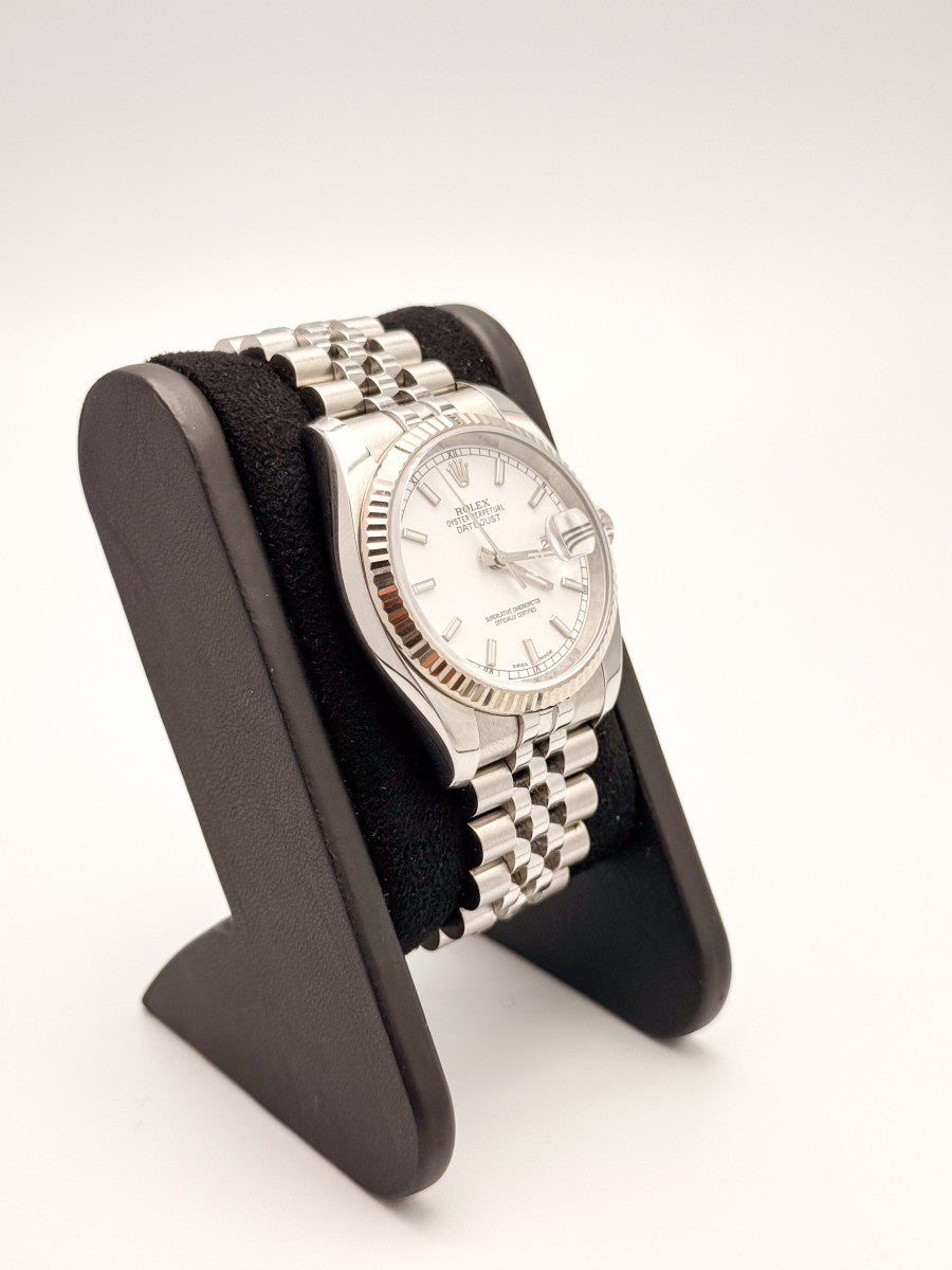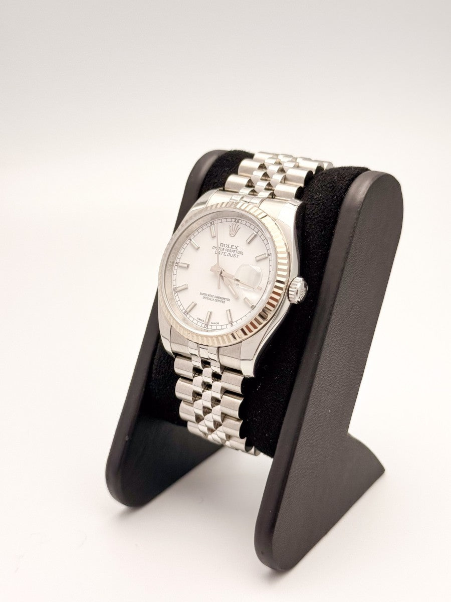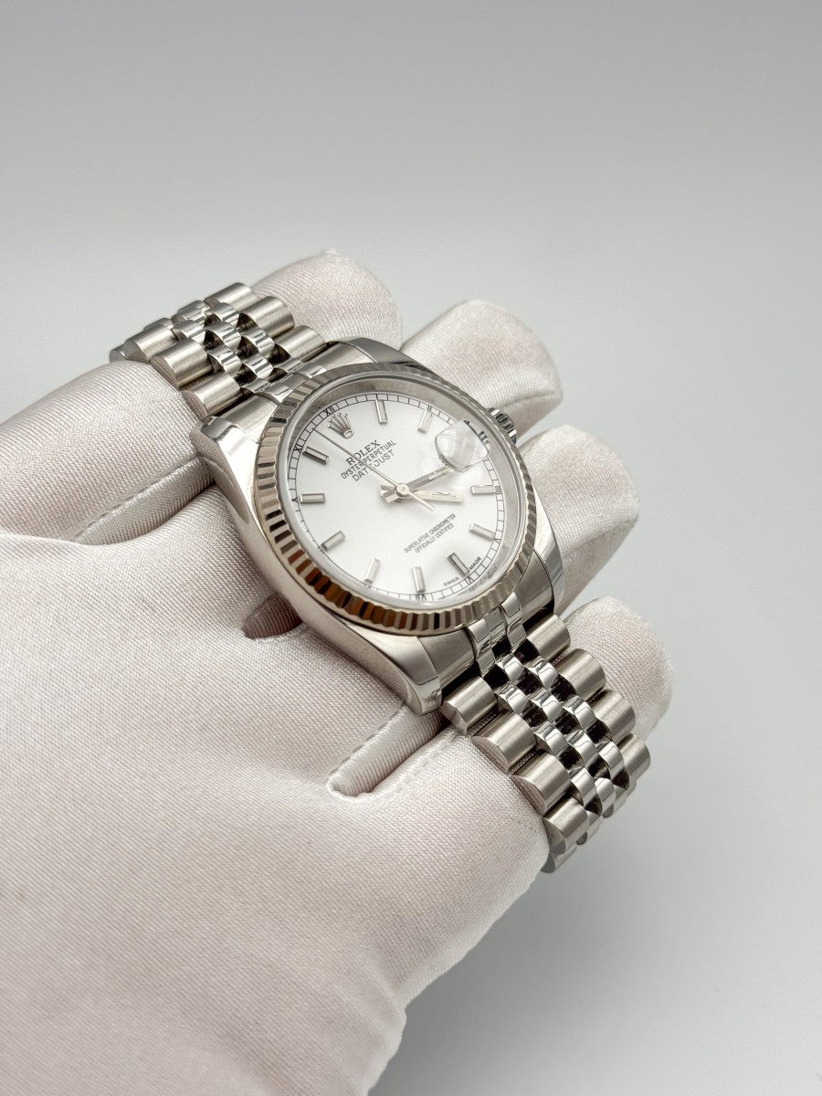 Scopri l’ineguagliabile eleganza del Rolex Datejust 116234, un simbolo di raffinatezza senza tempo. Con una cassa di 36 mm in acciaio pregiato, questo orologio incarna la maestria orologiera di Rolex, combinando funzionalità e estetica in un'unica opera d'arte. La ghiera zigrinata in oro bianco cattura la luce in ogni movimento, mentre il quadrante bianco offre un contrasto perfetto, esaltando la leggibilità delle lancette e degli indici. Il bracciale Jubilee, con la sua struttura raffinata e confortevole, abbraccia il polso con grazia, rendendo ogni momento indimenticabile. Indossare il Datejust non è solo una scelta di stile, ma un’affermazione di prestigio e classe che trascende le tendenze del tempo.