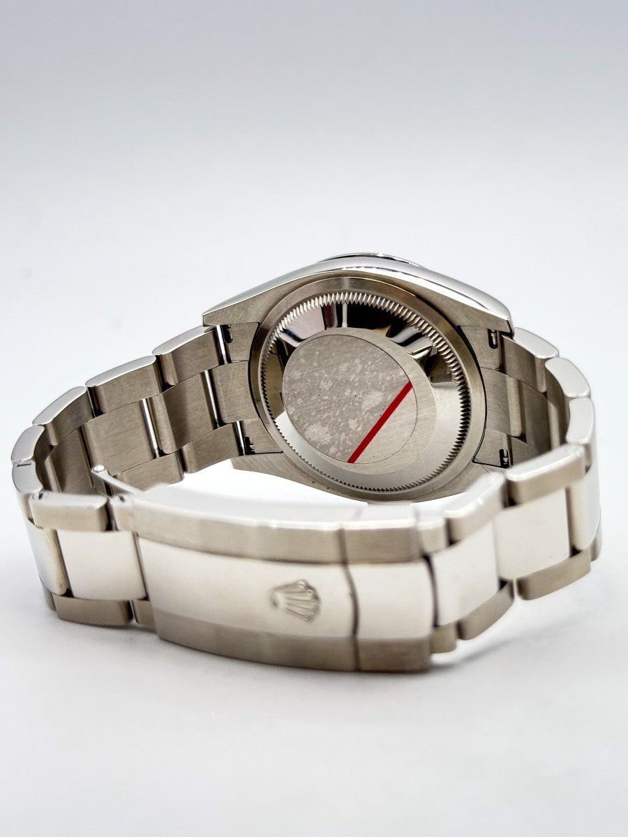 Scoprite l'eleganza senza tempo del Rolex Datejust 126234, un simbolo di raffinatezza e maestria artigianale. Con la sua cassa di 36 mm in acciaio, questo straordinario orologio rappresenta l'incontro perfetto tra funzionalità e stile. La ghiera zigrinata in oro bianco aggiunge un tocco di opulenza, mentre il quadrante argentato cattura la luce con una luminosità delicata, rendendolo un accessorio versatile per ogni occasione. Il bracciale Oyster, sinonimo di comfort e durata, si adatta perfettamente al polso, offrendo una vestibilità impeccabile. La chiusura déployante assicura un indosso semplice e sicuro, rendendo il Datejust un compagno fidato per chi cerca non solo un orologio, ma una dichiarazione di stile incomparabile.