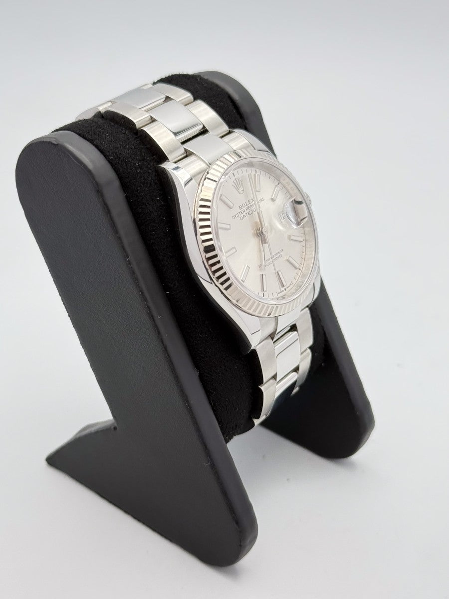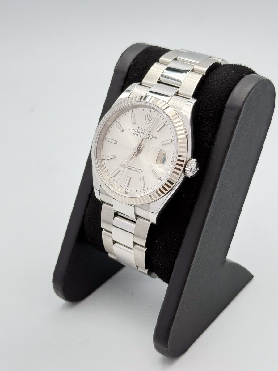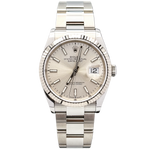 Il Rolex Datejust 126234 incarna l'essenza dell'eleganza e della raffinatezza senza tempo. La sua cassa da 36 mm, realizzata in pregiato acciaio, offre una presenza raffinata al polso, perfetta per ogni occasione, dal business meeting al gala serale. La ghiera zigrinata in oro bianco aggiunge un tocco di lusso, catturando la luce con ogni movimento e conferendo al segnatempo un fascino ineguagliabile. Il quadrante argentato, sobrio e luminoso, si sposa armoniosamente con i dettagli del bracciale Oyster, progettato per garantire comfort e stile ineguagliabili. Ogni elemento è pensato per riflettere la maestria artigianale che caratterizza Rolex, facendo di questo orologio un simbolo di prestigio e distinzione, capace di raccontare storie di eleganza e successo.