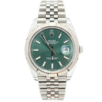 La Rolex Datejust 126334 è l'emblema dell'eleganza e della precisione. Con un diametro di 41 mm, questa raffinata creazione si distingue per la sua cassa in acciaio, un materiale che unisce robustezza e stile senza tempo. La ghiera zigrinata in oro bianco aggiunge un tocco di lusso, mentre il quadrante verde risplende di carattere e originalità, catturando l'attenzione con la sua luminosità unica. Il bracciale Jubilee, con la sua lavorazione impeccabile, garantisce non solo un comfort straordinario, ma anche un'estetica che celebra la tradizione orologiera. La chiusura déployante assicura una vestibilità perfetta, permettendo di indossare questo orologio in ogni occasione, dal più formale al più casual. La Datejust 126334 è un gioiello di alta orologeria che esprime personalità e classe in ogni dettaglio.