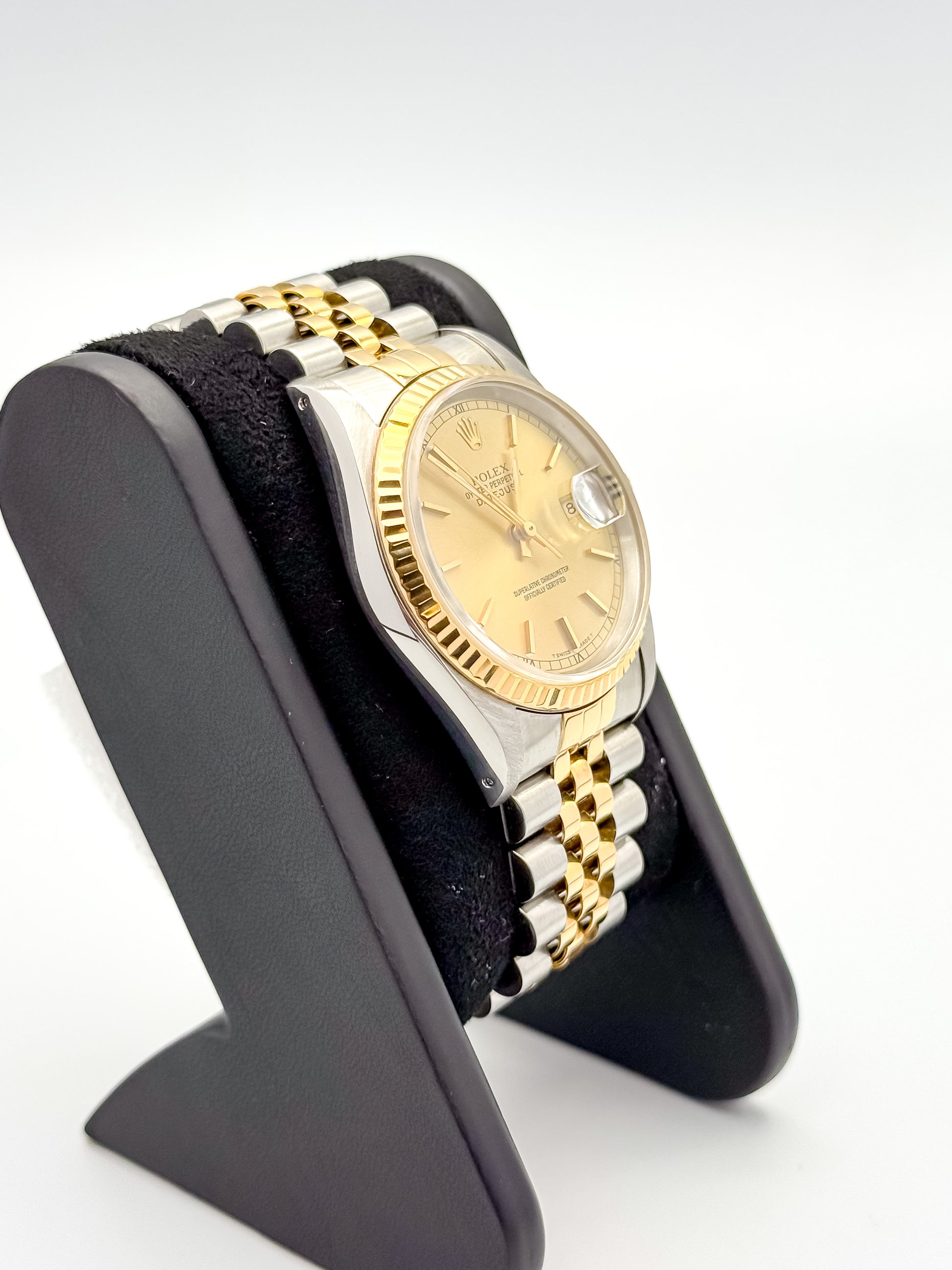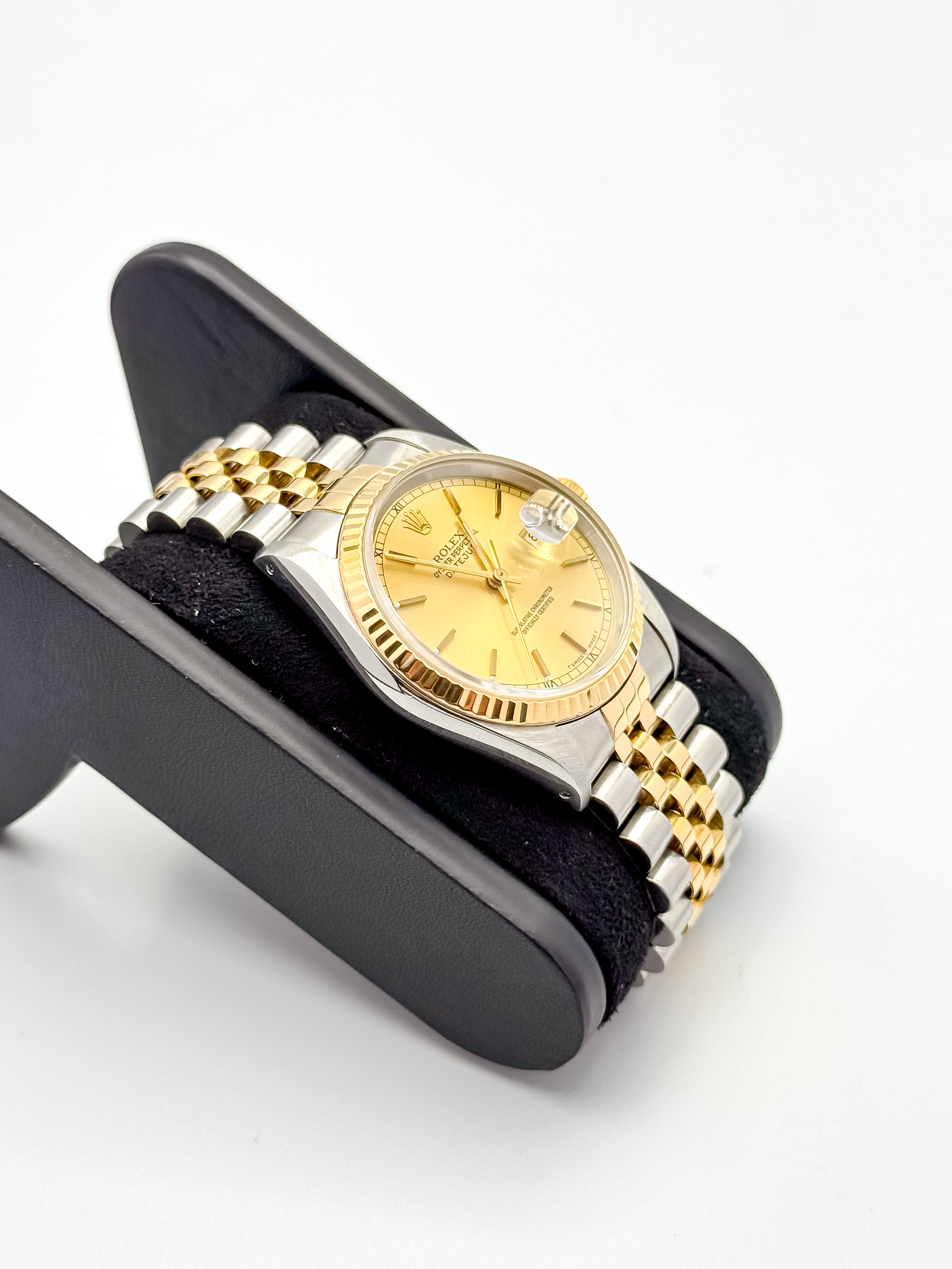 L'orologio Datejust 16233 rappresenta un capolavoro dell'orologeria svizzera, simbolo di eleganza senza tempo e precisione tecnica. Questo modello combina una cassa in acciaio inossidabile con dettagli in oro giallo, creando un contrasto sofisticato che si adatta tanto agli ambienti formali quanto a quelli casual. La finestra della data posizionata a ore 3 è una firma distintiva del modello, mentre il movimento automatico garantisce affidabilità e accuratezza. Il quadrante elegante e il bracciale Jubilée completano un orologio che incarna il perfetto equilibrio tra funzionalità e design raffinato. Un investimento duraturo per chi apprezza l'eccellenza orologiera.
