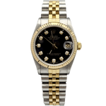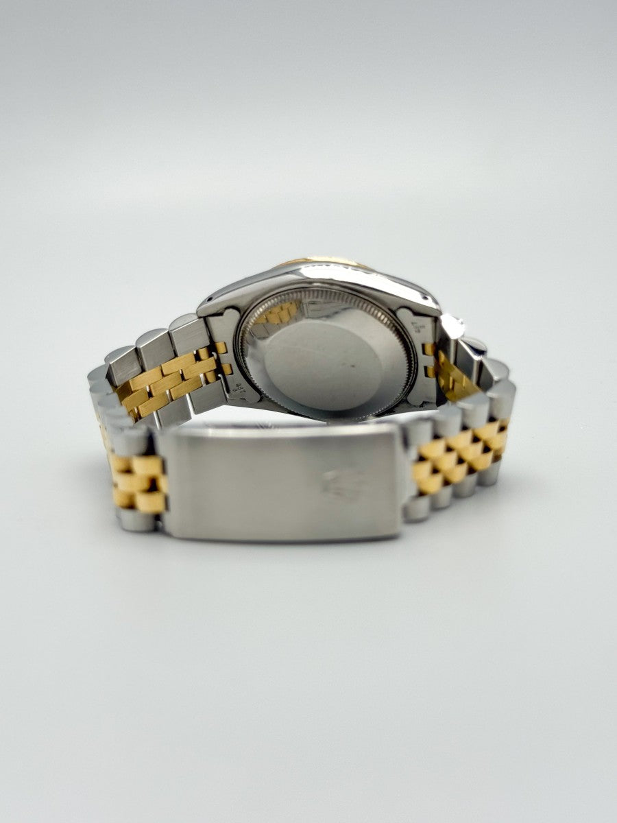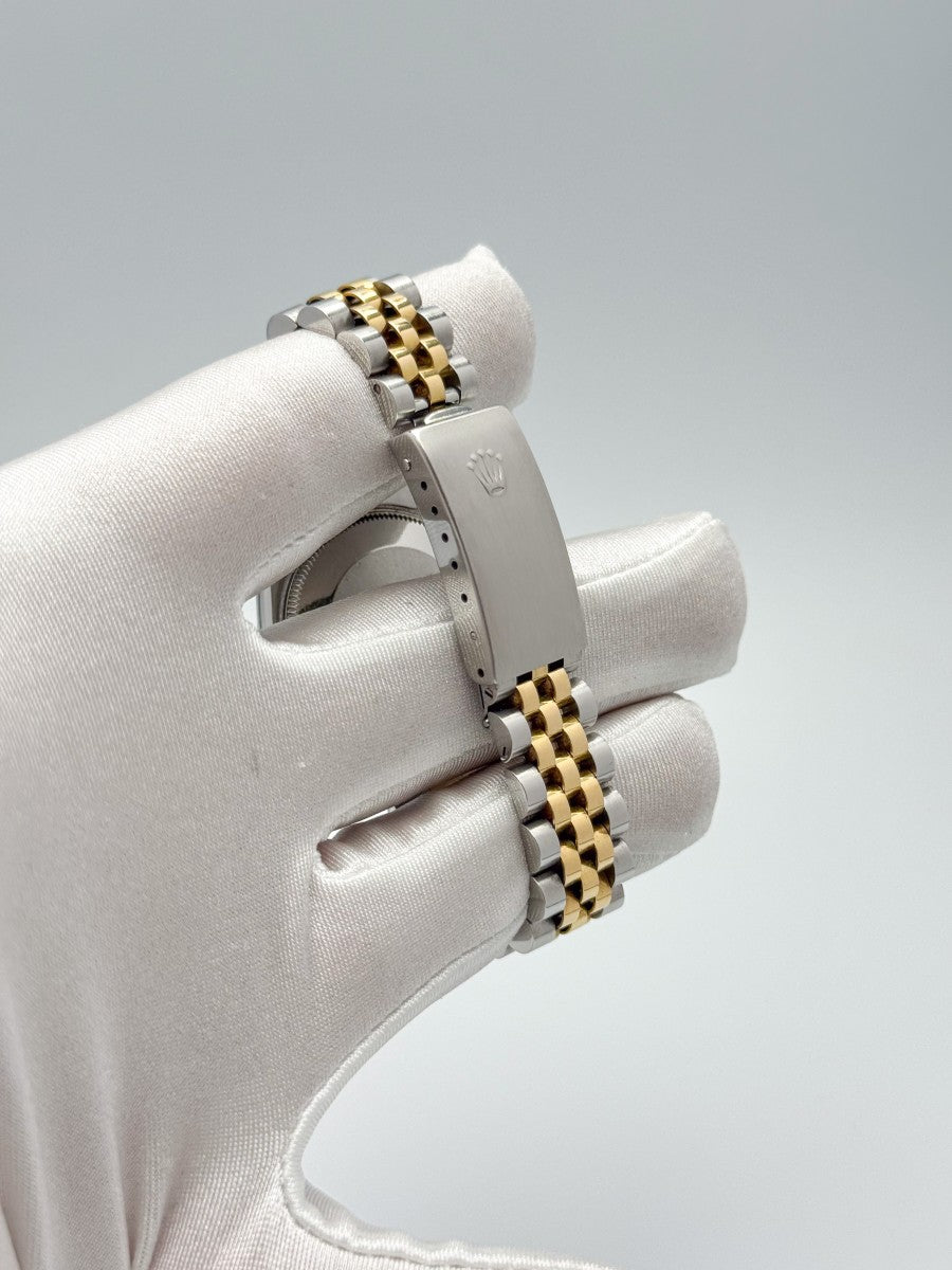 La Rolex Datejust 68273 è un simbolo di eleganza e raffinatezza, un orologio che trascende il tempo e le tendenze. La sua cassa da 31 mm, realizzata in un pregiato mix di oro giallo e acciaio, si distingue per la ghiera zigrinata che conferisce un tocco di audacia e nobiltà. Il quadrante nero, arricchito da indici in pietre preziose, brilla con una luce unica, catturando sguardi e attenzioni ad ogni istante. Il bracciale Jubilee, con la sua struttura armoniosa, abbraccia il polso con una vestibilità impeccabile, offrendo un comfort che si fa notare in ogni occasione. Indossare la Datejust 68273 significa non solo portare un segnatempo di lusso, ma anche affermare un sofisticato stile di vita senza tempo.