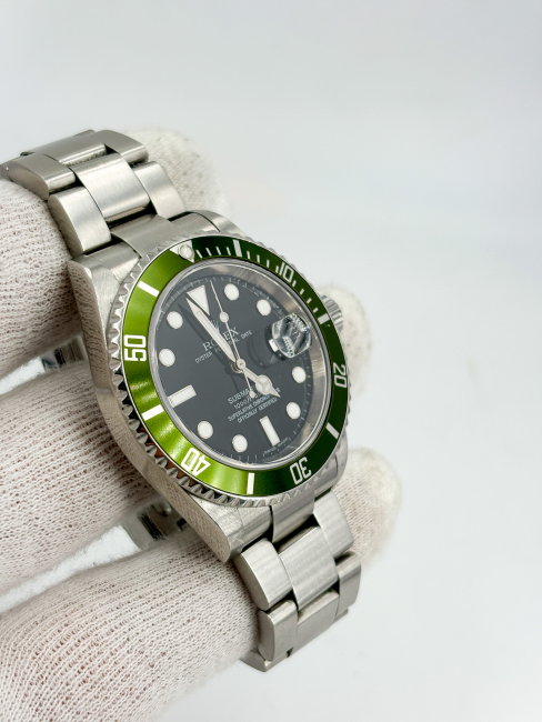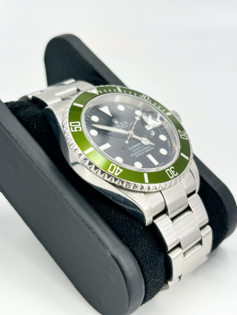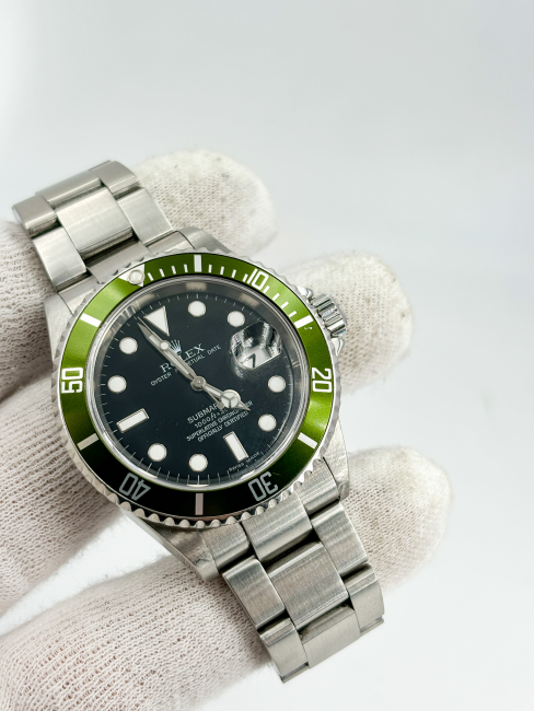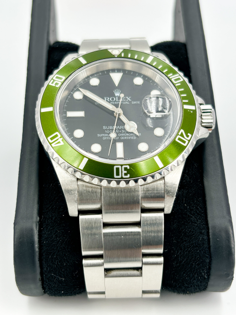 Il Rolex Submariner 16610LV rappresenta l’apice dell’ingegneria orologiera e un simbolo di status senza tempo. Con una cassa elegante di 40mm in acciaio inox, questo straordinario orologio è progettato per resistere alle sfide più ardue, pur mantenendo un'estetica sofisticata. La ghiera in alluminio, con il suo caratteristico colore verde, non solo conferisce un tocco distintivo, ma offre anche funzionalità e praticità per gli appassionati di immersioni. Il quadrante nero, in perfetta armonia con il bracciale Oyster, assicura una leggibilità impeccabile, catturando la luce in ogni situazione. La chiusura déployante garantisce comfort e sicurezza, rendendo il Submariner 16610LV un compagno ideale per chi desidera coniugare eleganza e performance in un orologio di lusso.