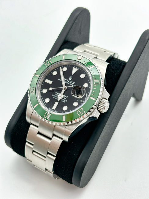 Il Rolex Submariner 126610LV rappresenta un'icona di eleganza e prestazioni senza pari, capace di attrarre non solo gli appassionati di orologeria, ma anche coloro che cercano un simbolo di status e raffinatezza. Con una cassa di 40 mm in acciaio inossidabile, questo straordinario segnatempo unisce robustezza e leggerezza, assicurando un comfort ottimale al polso. La ghiera in ceramica, resistente ai graffi e dal fascino intramontabile, contrasta splendidamente con il quadrante nero, creando un effetto visivo di grande impatto. Il bracciale Oyster, sinonimo di solidità e stile, non solo completa l'estetica raffinata del Submariner, ma ne garantisce anche una vestibilità perfetta. Questo orologio non è solo un accessorio, ma un compagno ideale per chi vive la vita con passione e distinzione.