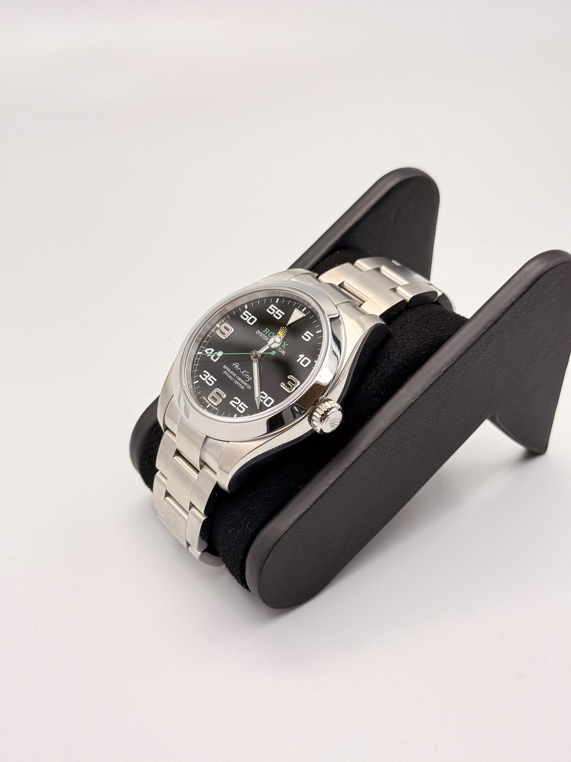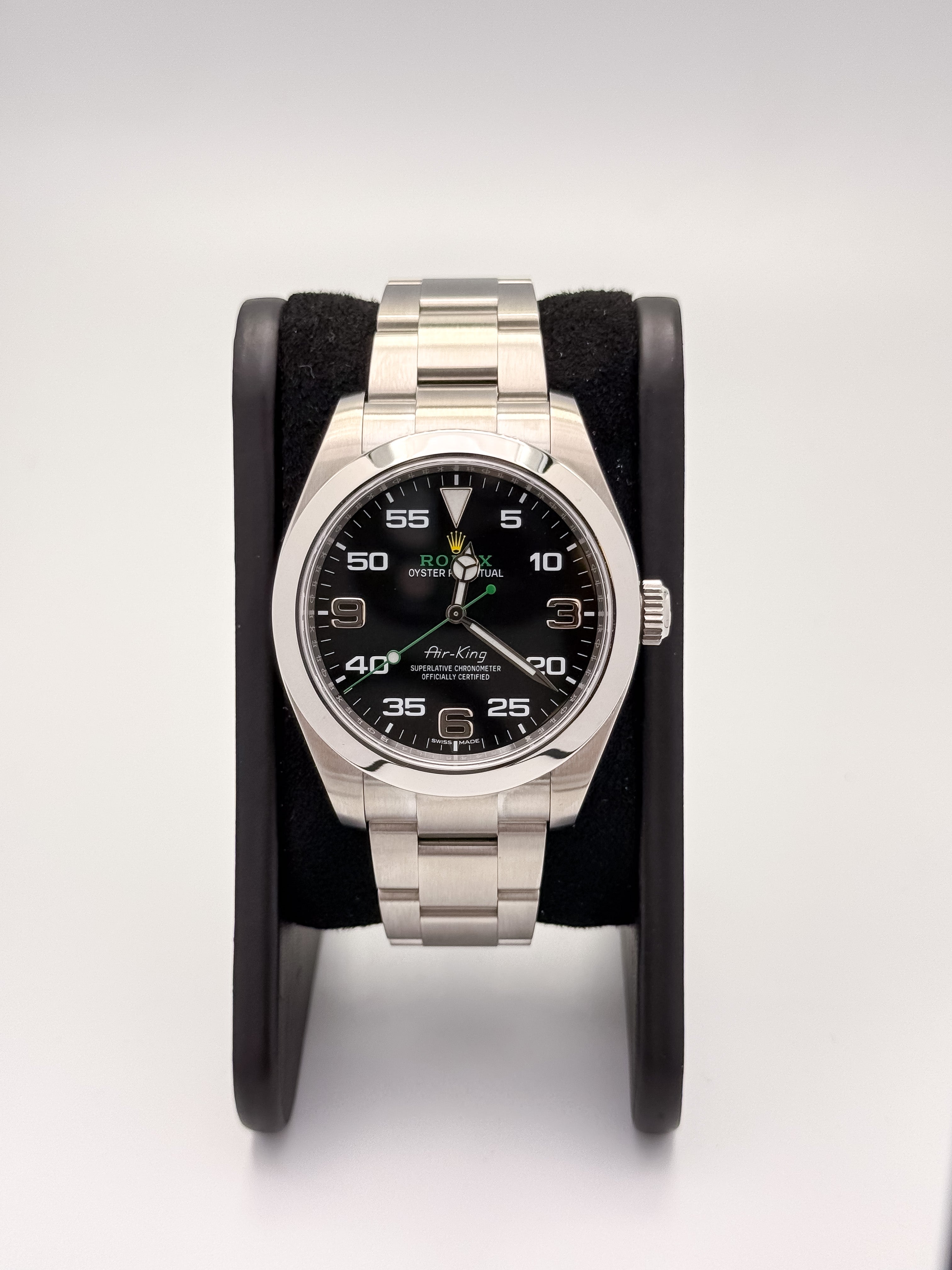 L’Air-King 116900 si distingue per il suo design classico e la precisione dell'orologeria svizzera. Dotato di cassa in acciaio inossidabile e quadrante nero con indici chiari, offre una leggibilità ottimale. Il movimento meccanico automatico garantisce affidabilità e performance costanti. Un orologio che unisce tradizione e innovazione, ideale per chi cerca un accessorio di prestigio con un’elevata funzionalità quotidiana.