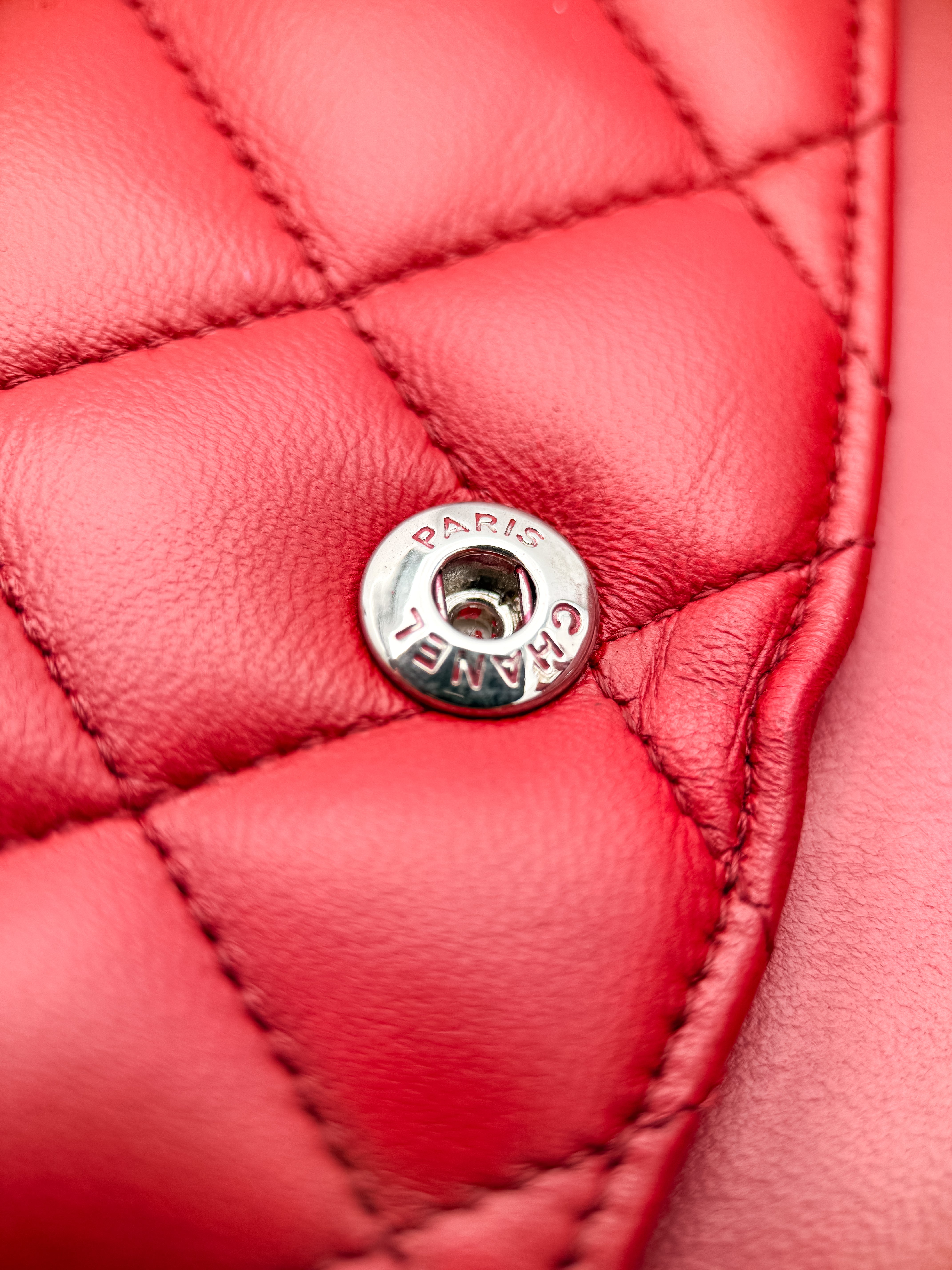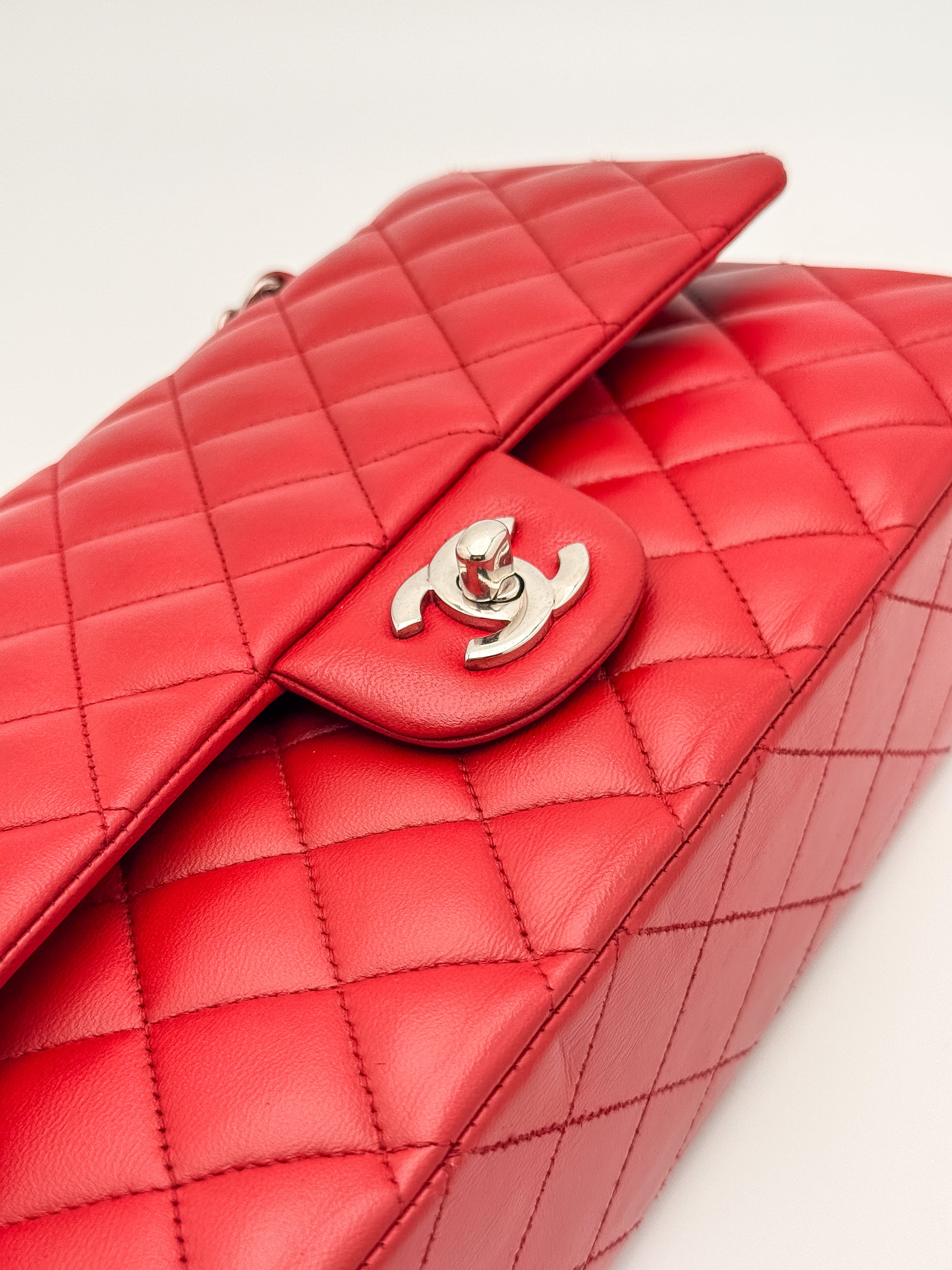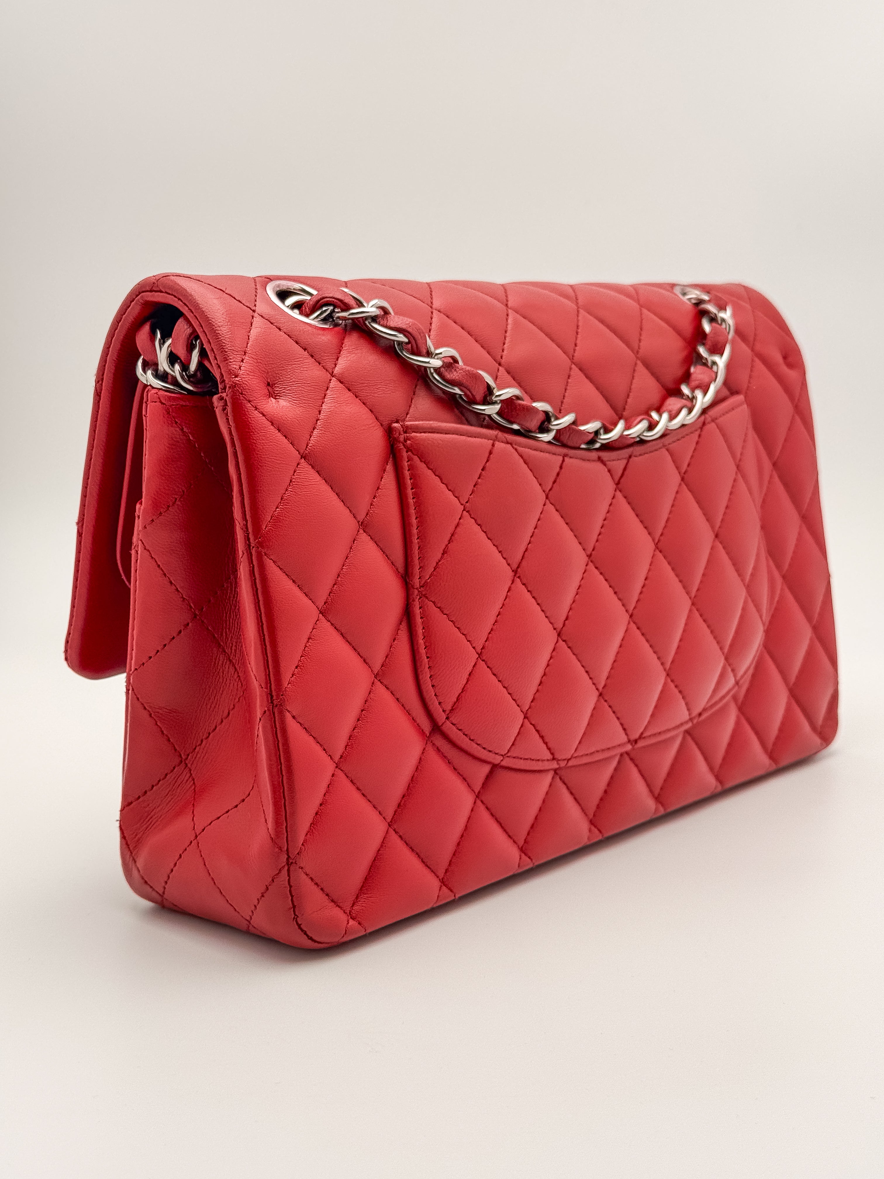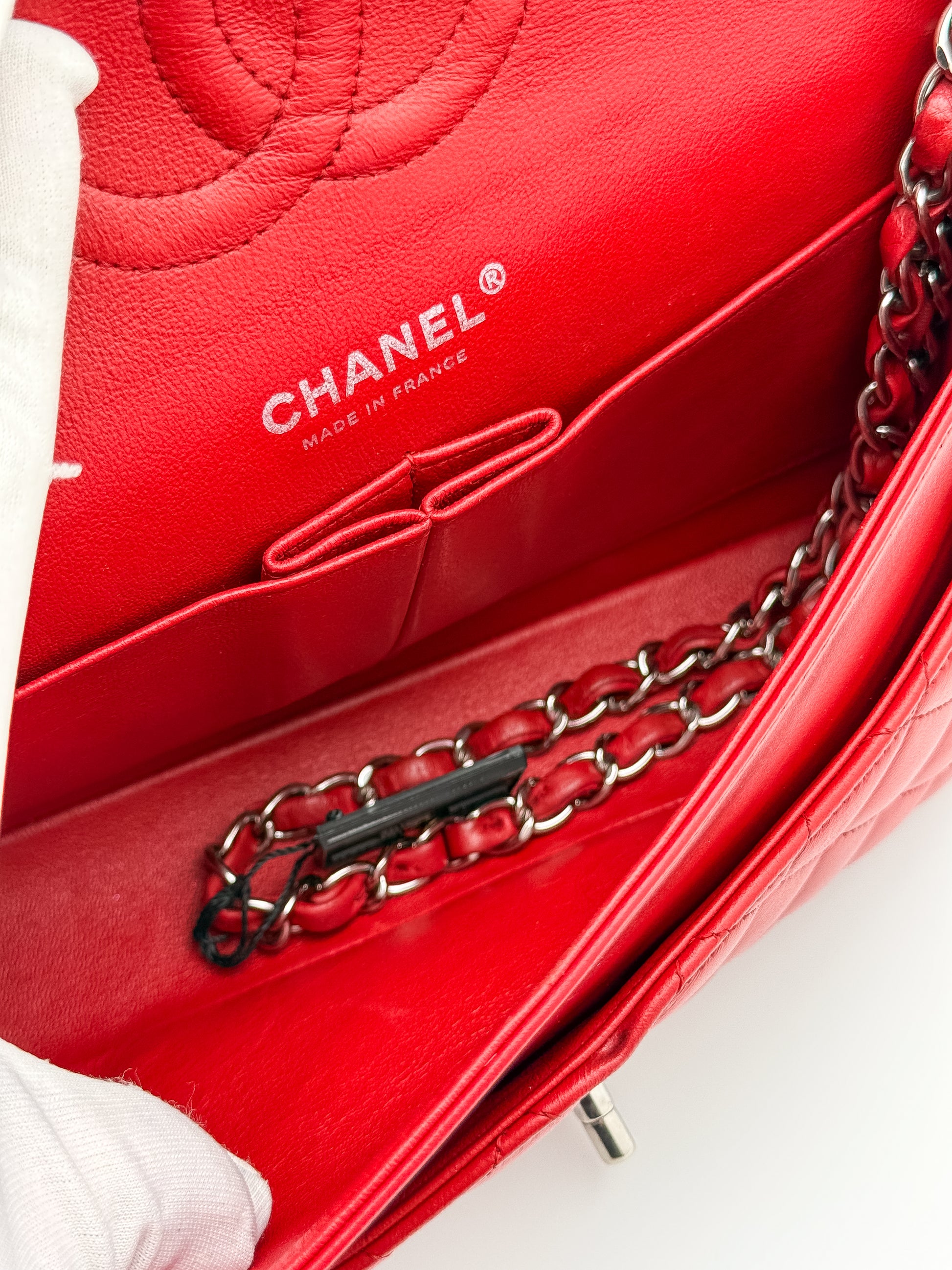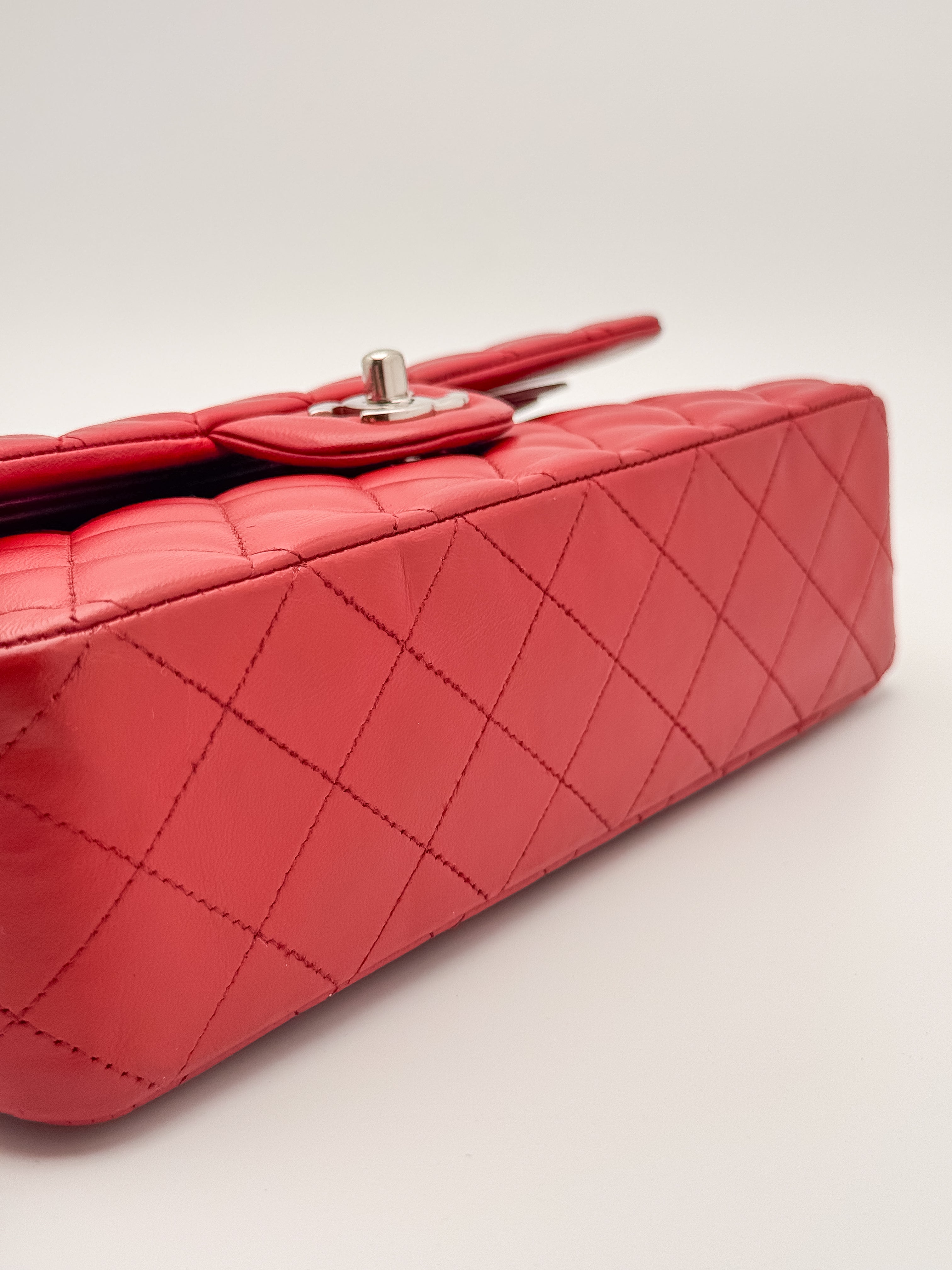 La Chanel Classic 11.12 25 rappresenta l'essenza della sartoria francese, un capolavoro intramontabile che incarna l'eleganza sofisticata della maison. Realizzata in pregiato lambskin rosso, la borsa offre una texture morbida e raffinata che cattura la luce con naturale luminosità. Gli hardware in color argento completano il design con un tocco di modernità discreta, esaltando le proporzioni armoniose della silhouette. Le dimensioni compatte 25 la rendono ideale per occasioni formali e serate esclusive, garantendo praticità senza compromessi stilistici. Un investimento nel lusso autentico, simbolo di gusto impeccabile e consapevolezza sartoriale.