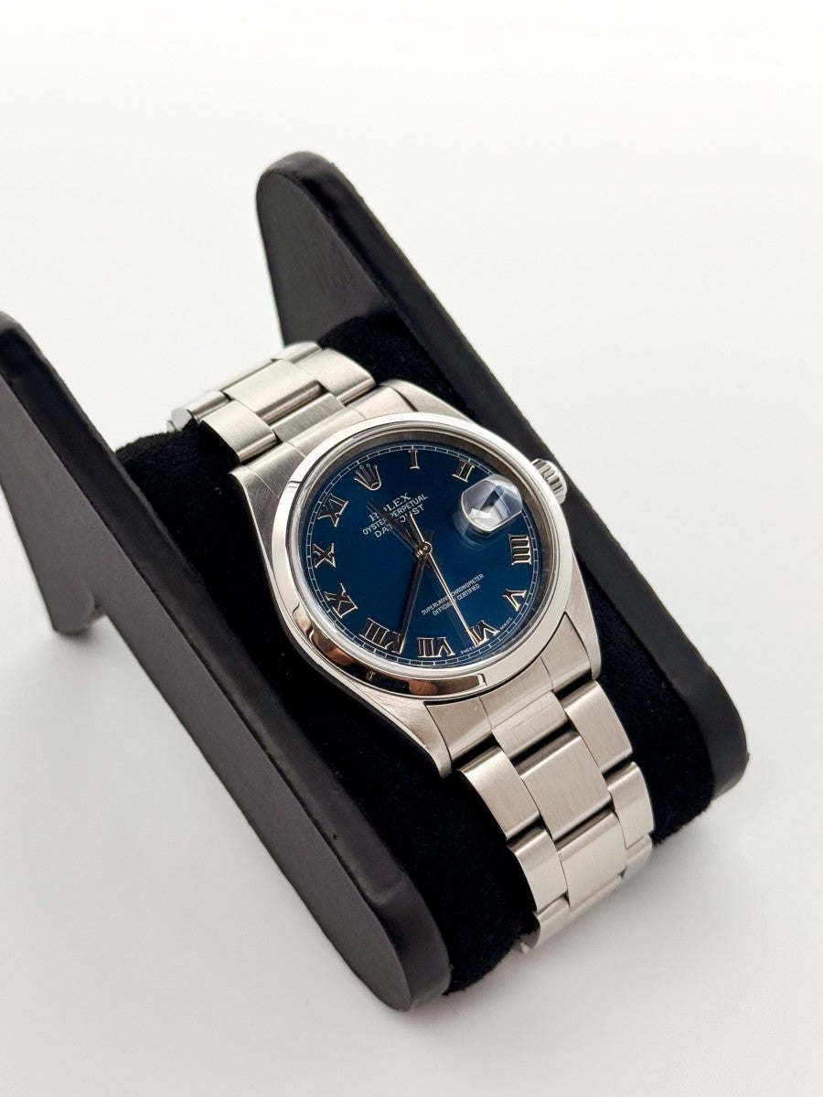 Il Rolex Datejust 16200 rappresenta l’essenza dell’eleganza senza tempo, un orologio che incarna la maestria artigianale e l’innovazione del marchio svizzero. Con la sua cassa da 36 mm, questo segnatempo si distingue per la sua sobria raffinatezza, rendendolo un accessorio ideale per ogni occasione, sia formale che casual. Il quadrante blu, impreziosito da indici romani, offre un contrasto affascinante, creando un dialogo armonioso tra tradizione e modernità. La ghiera liscia enfatizza la purezza del design, mentre il bracciale Oyster, con chiusura déployante, assicura un comfort e una vestibilità perfetti. Indossare il Rolex Datejust è molto più di un semplice gesto; è un'affermazione di stile e distinzione.