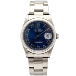 Il Rolex Datejust 16200 rappresenta l'emblema dell'eleganza senza tempo, fondendo maestria artigianale e design sofisticato. Con una cassa di 36 mm in acciaio, questo orologio si distingue per la sua silhouette raffinata, capace di adattarsi a qualsiasi polso con grazia e comfort. La ghiera liscia esalta la purezza delle linee, mentre il quadrante blu, impreziosito da indici romani, offre un contrasto spettacolare, catturando la luce e l’attenzione di chi lo osserva. Il bracciale Oyster, noto per la sua solidità e versatilità, completa questo straordinario pezzo, garantendo una vestibilità perfetta e un'eleganza ineguagliabile. Indossare il Datejust significa indossare un simbolo di prestigio e distinzione, un compagno perfetto per ogni occasione.
