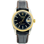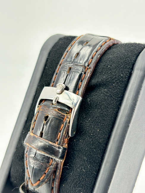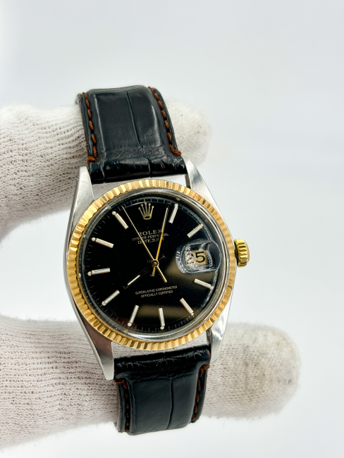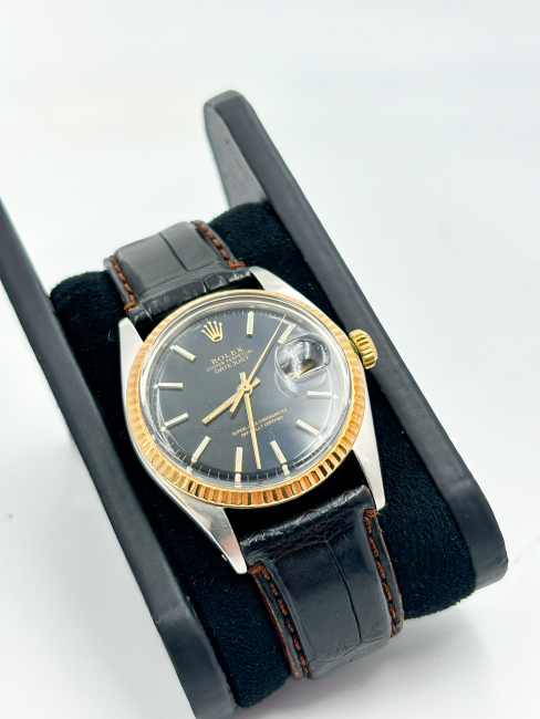 Il quadrante nero, con la sua bellezza sobria, conferisce a questo capolavoro un fascino irresistibile, perfetto per ogni occasione. L'accostamento di materiali nobili come la pelle del bracciale, che avvolge il polso con una comodità ineguagliabile, rende il Datejust 1601 non solo un segnatempo, ma un vero e proprio accessorio di stile.