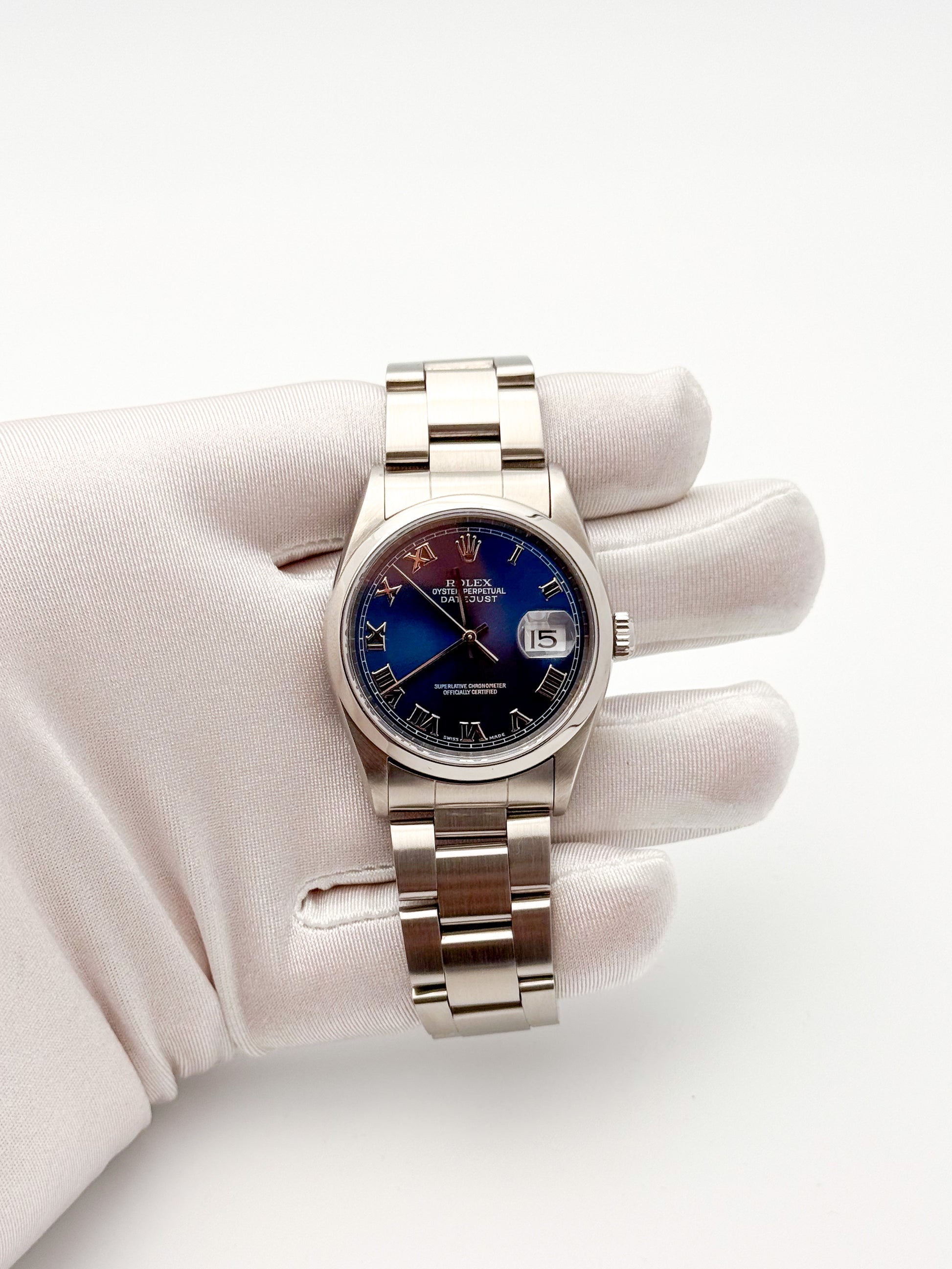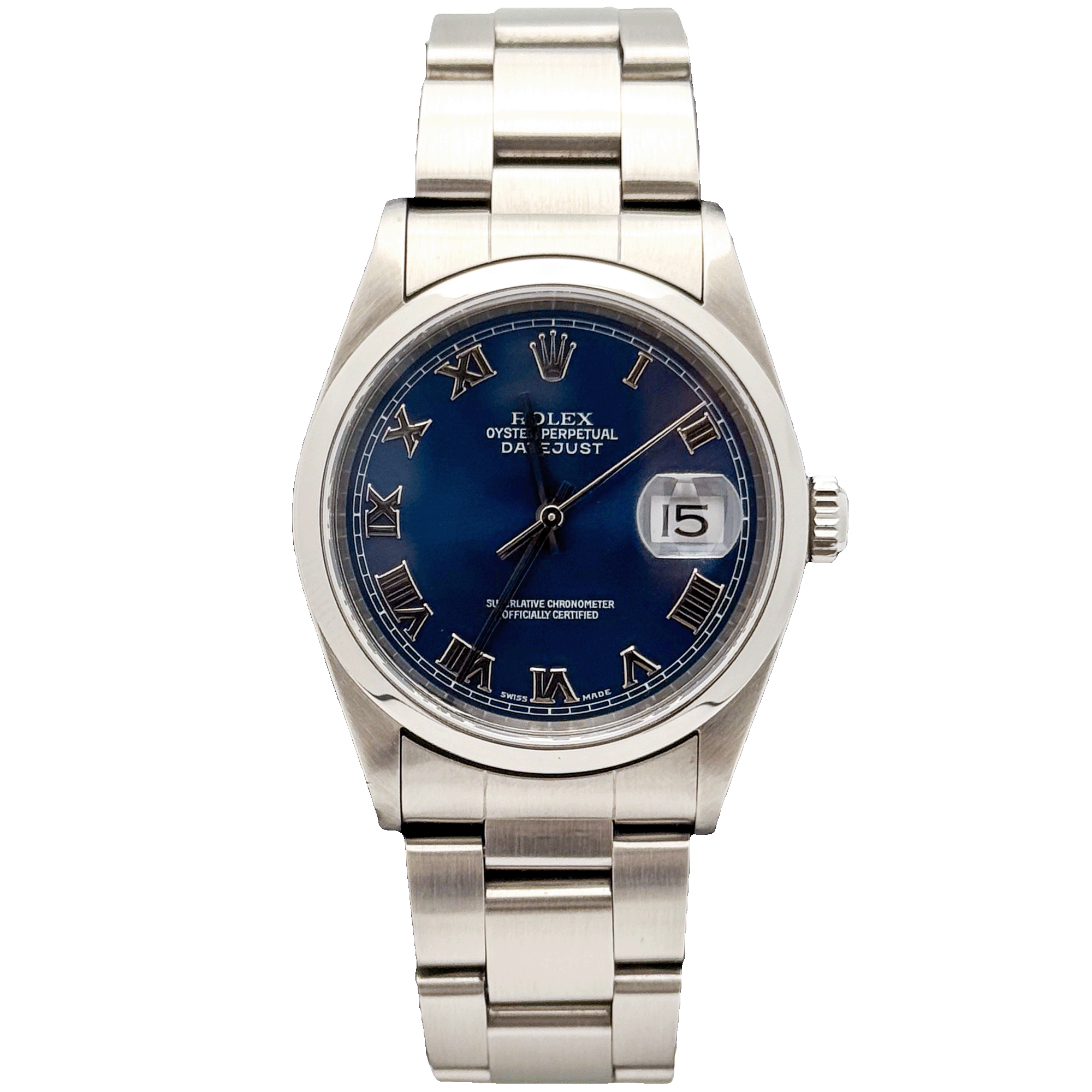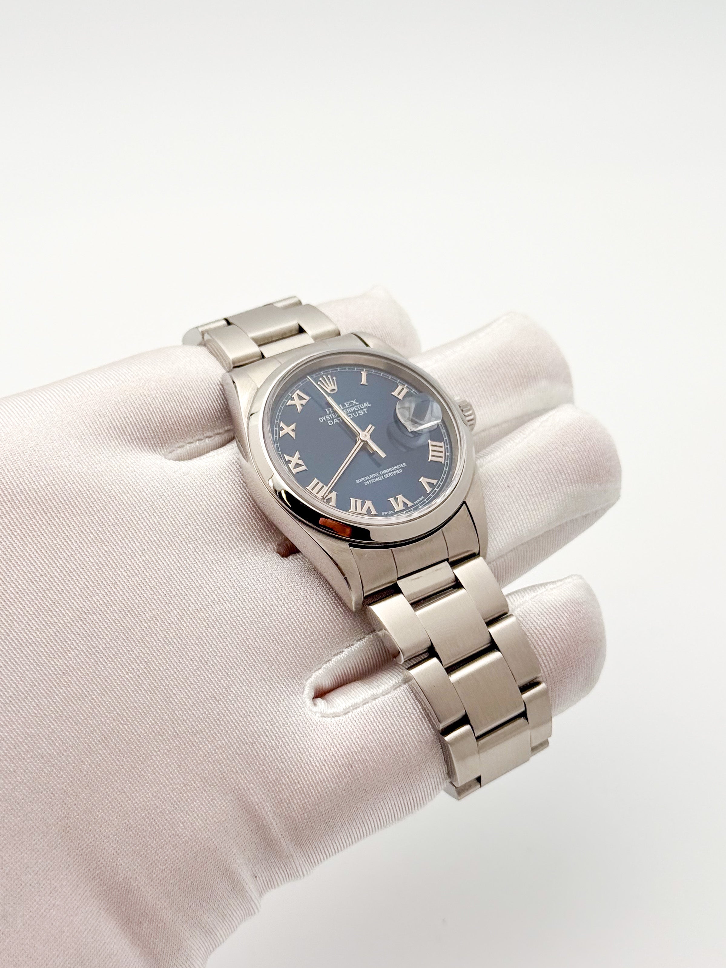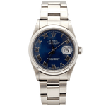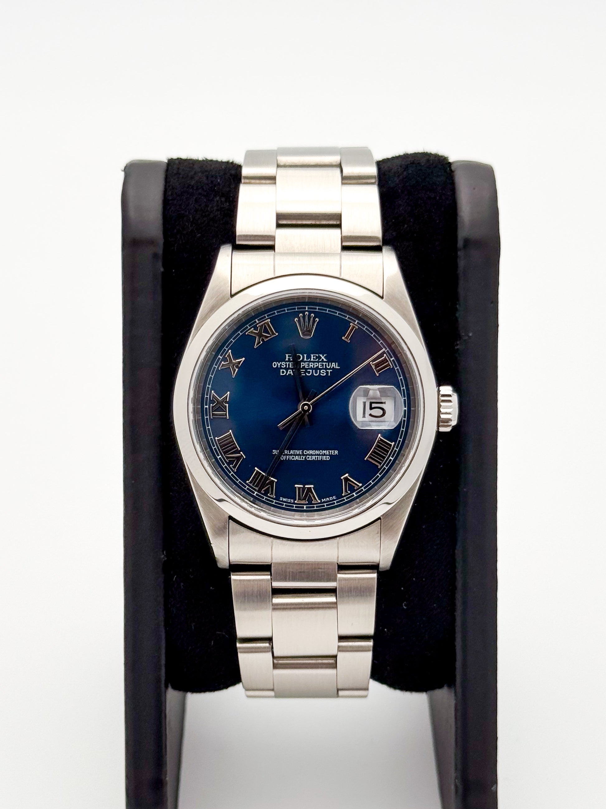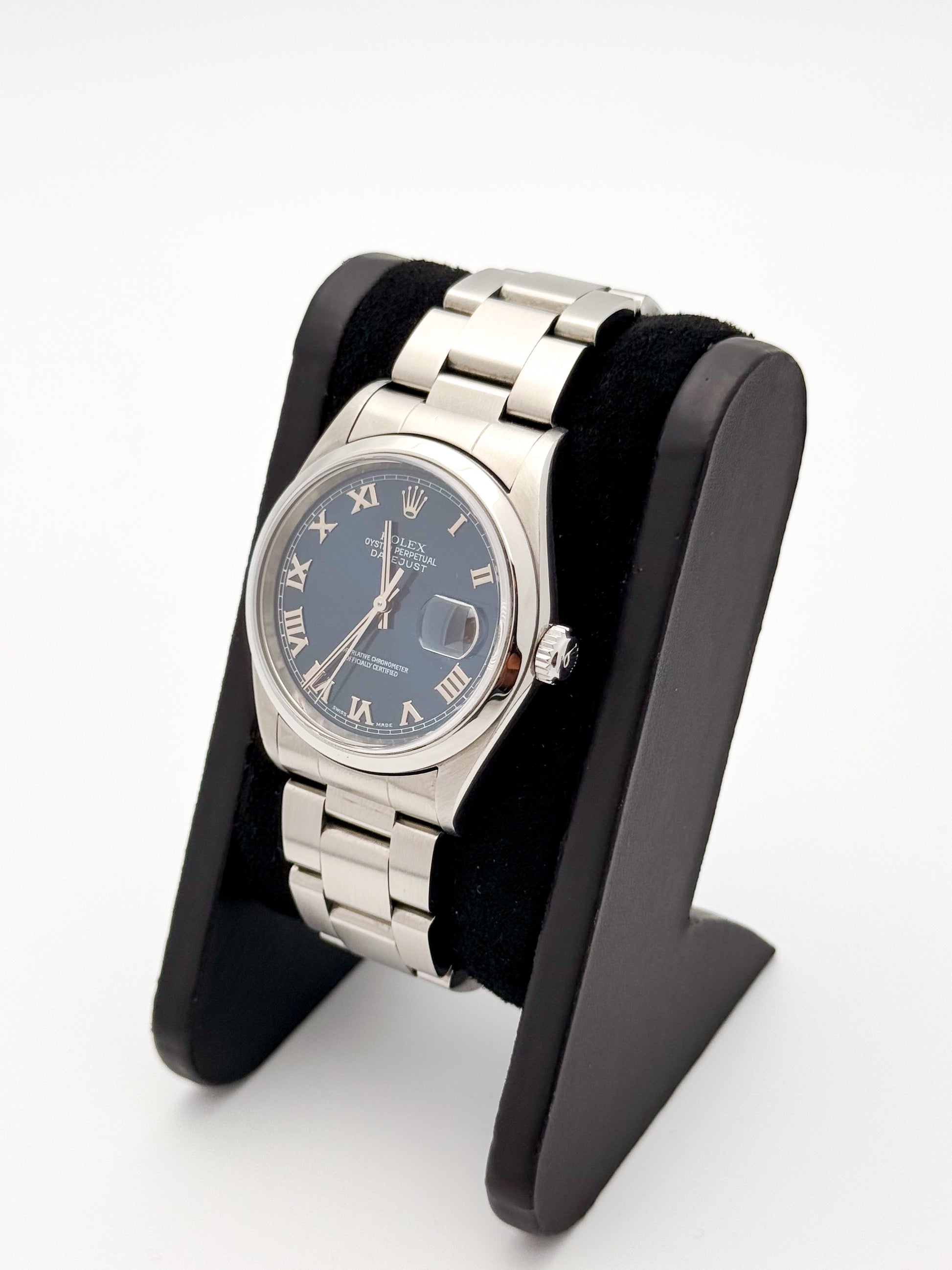 Il Datejust 16200 presenta una cassa da 36 mm perfettamente proporzionata, abbinata a un elegante quadrante blu con numeri romani che conferisce un tocco classico e raffinato. Il bracciale Oyster garantisce robustezza e comfort, rendendo questo orologio ideale per un uso quotidiano senza rinunciare allo stile distintivo. Un capolavoro di precisione e design senza tempo.