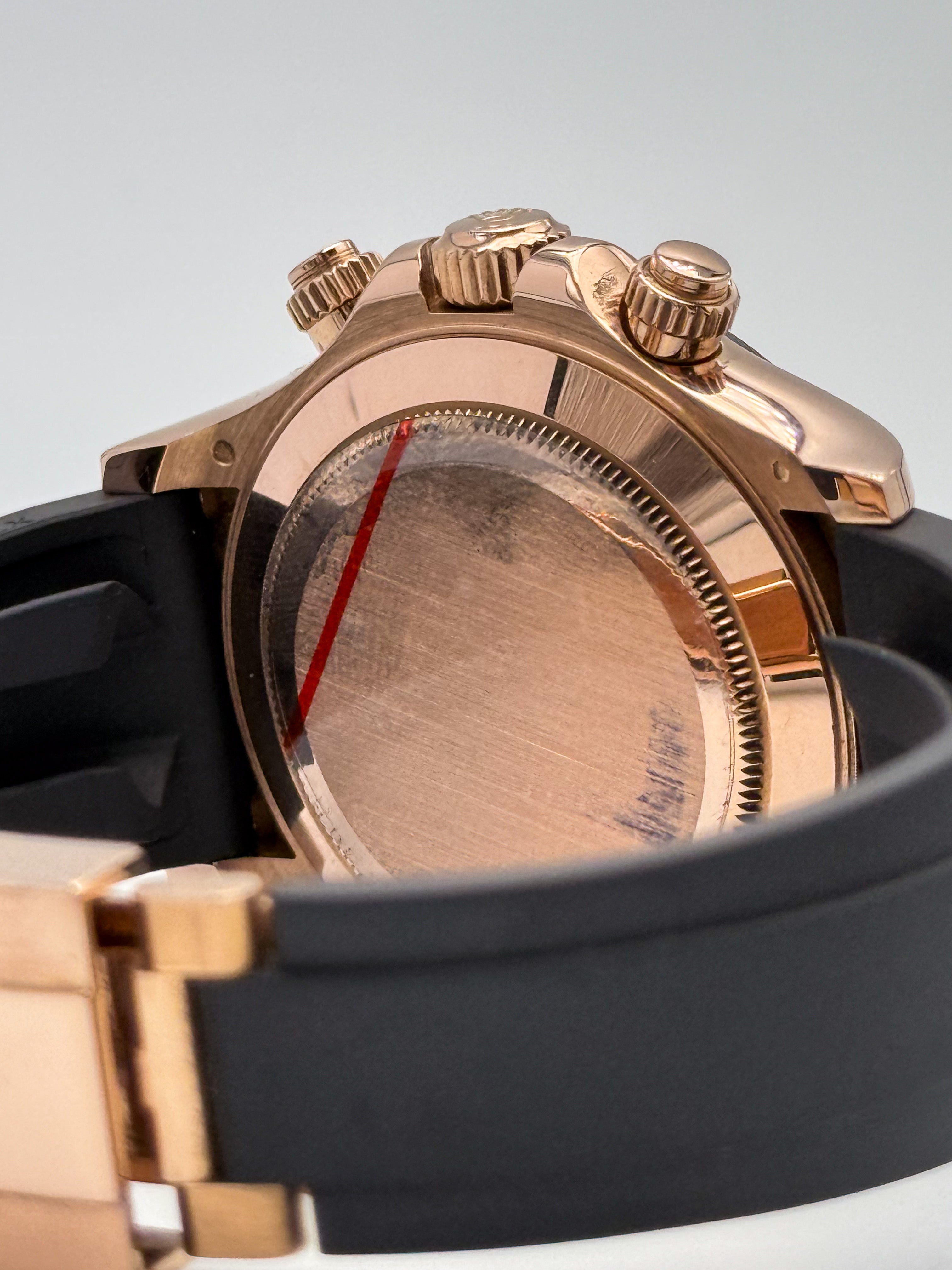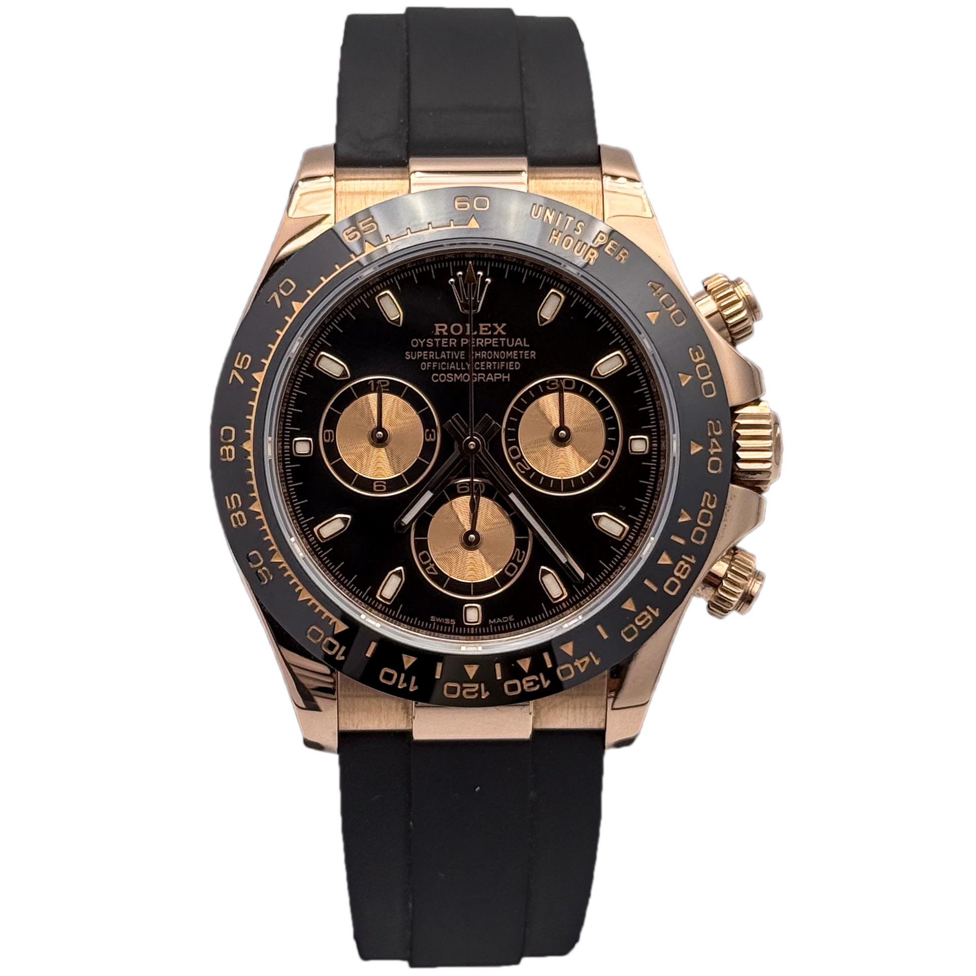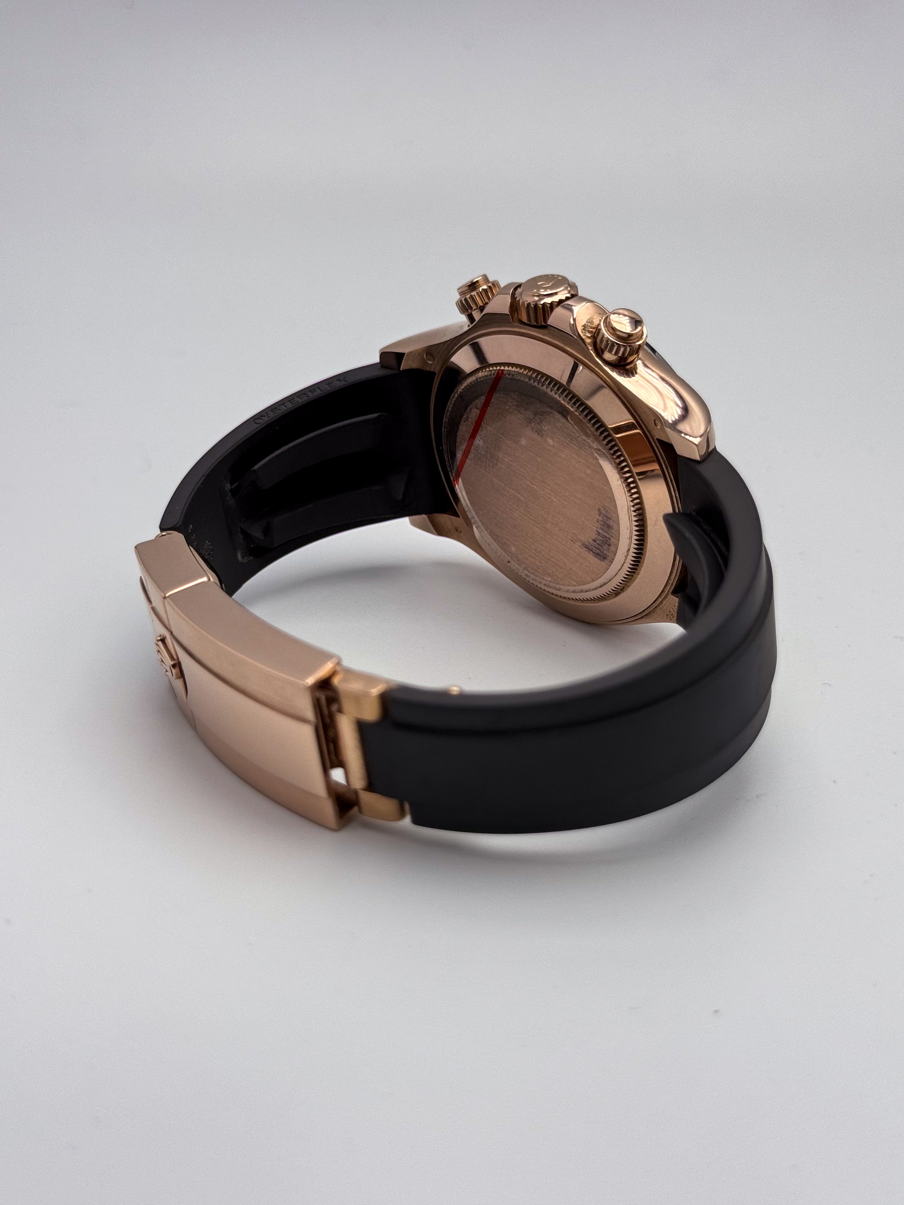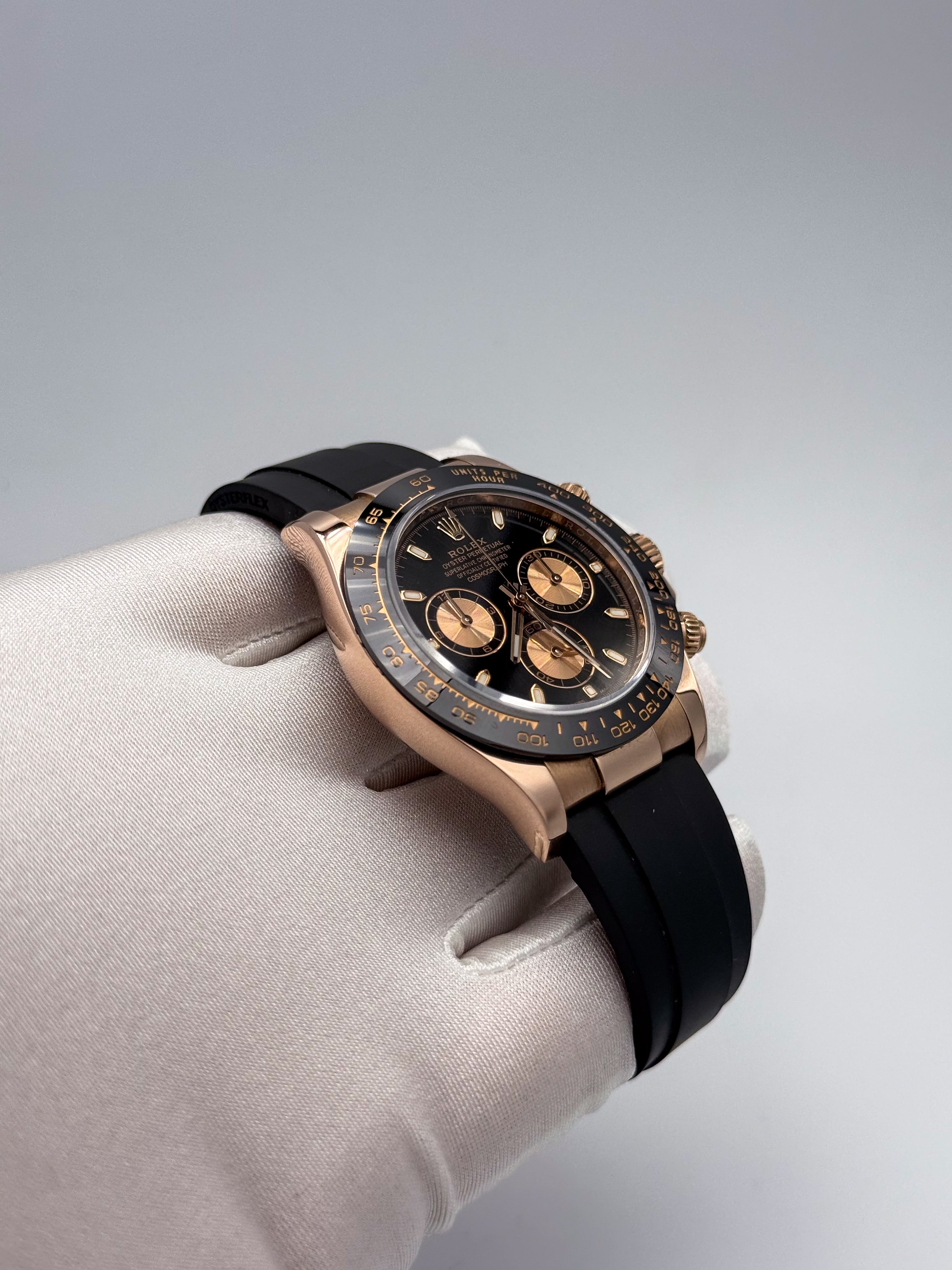 Cronografo sportivo di eccellenza con quadrante nero che esalta la leggibilità dei contatori. La cassa in oro rosa 18 carati conferisce eleganza senza compromessi, mentre il bracciale in gomma Oysterflex garantisce comfort e resistenza in ogni situazione. Perfetto per chi ricerca prestazioni cronometriche affidabili abbinate a un design raffinato e versatile. Un orologio che unisce tradizione orologiera e innovazione materica.
