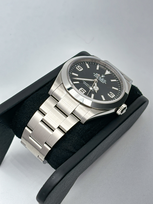 L'Explorer 224270 è un capolavoro di eleganza e funzionalità, un orologio che incarna l'essenza dell'avventura senza compromessi. Con una cassa di 40 mm in acciaio, questo segnatempo è progettato per resistere alle sfide del tempo e delle esplorazioni, pur mantenendo un aspetto raffinato e sofisticato. Il quadrante nero, con i suoi indici arabi ben definiti, offre una leggibilità impeccabile, rendendolo non solo un accessorio di lusso, ma anche un compagno affidabile in ogni situazione. La ghiera liscia e il bracciale Oyster aggiungono un tocco di classe che si sposa perfettamente con l’estetica robusta, creando un equilibrio ideale tra stile e prestazioni. Con la chiusura déployante, l'Explorer si adatta con facilità al polso, promettendo comfort e sicurezza per ogni avventura.