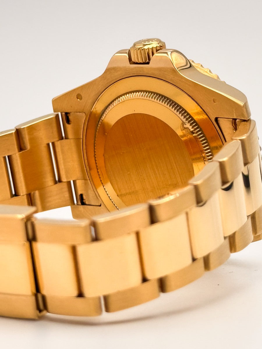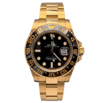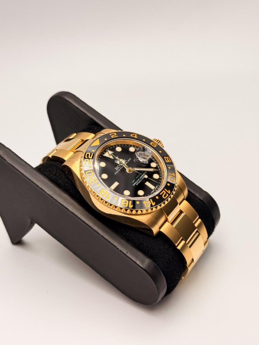 Il Rolex GMT-Master II 116718LN rappresenta l'apice dell'eleganza e della funzionalità, fondendo in modo impeccabile design sofisticato e tecnologia all'avanguardia. Con una cassa di 40 mm in oro giallo, questo orologio non è solo un accessorio, ma un’affermazione di stile che cattura immediatamente l’attenzione. La ghiera in ceramica nera, resistente ai graffi e perfetta per l'uso quotidiano, permette di monitorare diversi fusi orari con grazia e precisione. Il quadrante scuro, elegante e sobrio, mette in risalto le lancette e gli indici luminescenti, garantendo una leggibilità ottimale in qualsiasi situazione. Completato da un bracciale Oyster con chiusura déployante, questo orologio è una combinazione di comfort e raffinatezza, perfetto per chi cerca un simbolo di prestigio e distinzione.