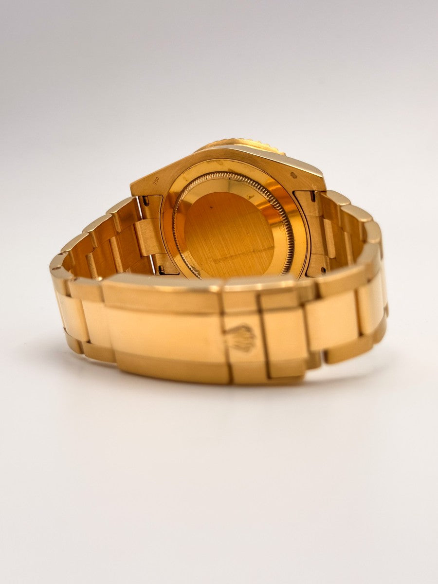 Il Rolex GMT-Master II 116718LN è l'incarnazione del lusso e della funzionalità, un orologio che fonde l'eleganza intramontabile con la precisione meccanica. La sua cassa in oro giallo da 40 mm non è solo un simbolo di status, ma un capolavoro di artigianato che riflette la luce in modo sublime, sottolineando il suo fascino distintivo. La ghiera in ceramica nera, resistente ai graffi, si sposa perfettamente con il quadrante scuro, creando un contrasto che attira l'attenzione e racconta una storia di avventure e viaggi. Con una riserva di carica di 50 ore, questo orologio è progettato per accompagnarti ovunque tu vada, rendendolo un compagno ideale per l'uomo moderno che non accetta compromessi sulla qualità. Indossare il GMT-Master II significa abbracciare un'eredità di eccellenza, perfetto per ogni occasione, dal business alle serate più eleganti.