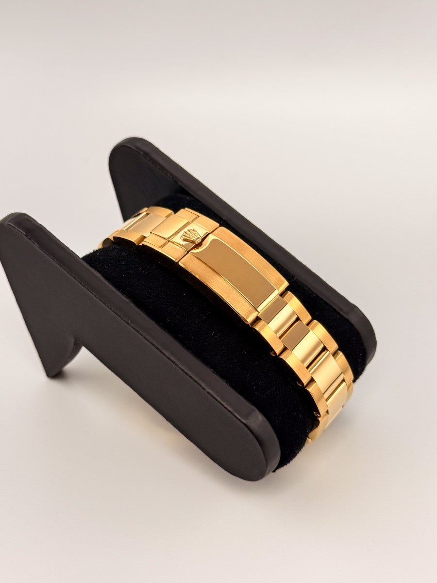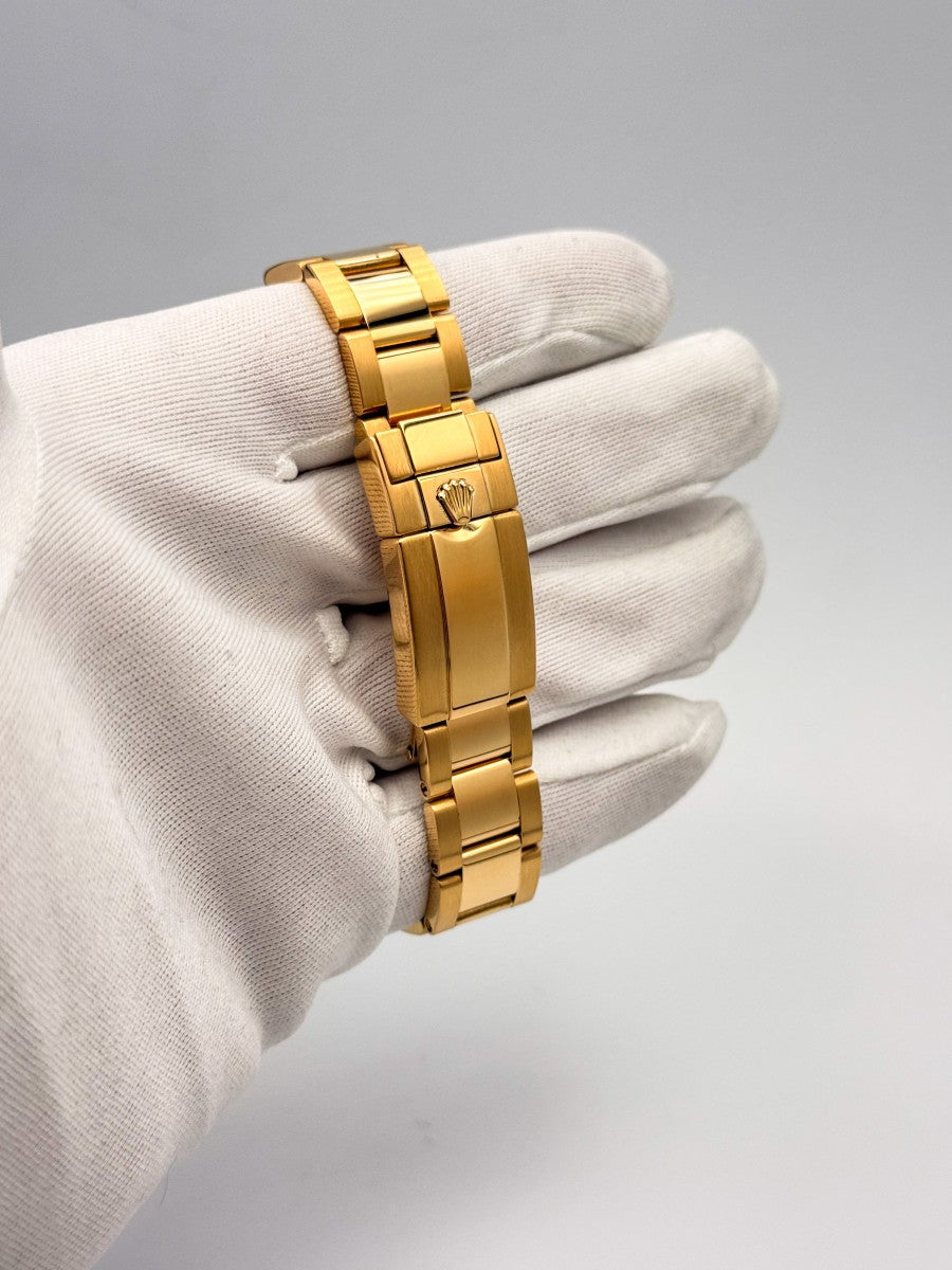 Scoprite l’eleganza senza tempo del Rolex GMT-Master II, referenza 116718LN, un capolavoro di lusso che incarna perfettamente l’arte orologiaia svizzera. Con una cassa da 40mm in oro giallo, questo segnatempo non è solo un accessorio, ma una vera dichiarazione di stile per l'uomo contemporaneo. La sua ghiera in ceramica nera, resistente ai graffi e dal design sofisticato, offre un contrasto perfetto con il quadrante nero, creando un'armonia visiva che cattura l'attenzione. Il bracciale Oyster, iconico e robusto, abbraccia il polso con comfort e grazia, mentre la chiusura déployante assicura una vestibilità sicura. Con una riserva di carica di 50 ore, il GMT-Master II è l'orologio ideale per chi vive la vita al massimo, senza mai rinunciare al lusso.