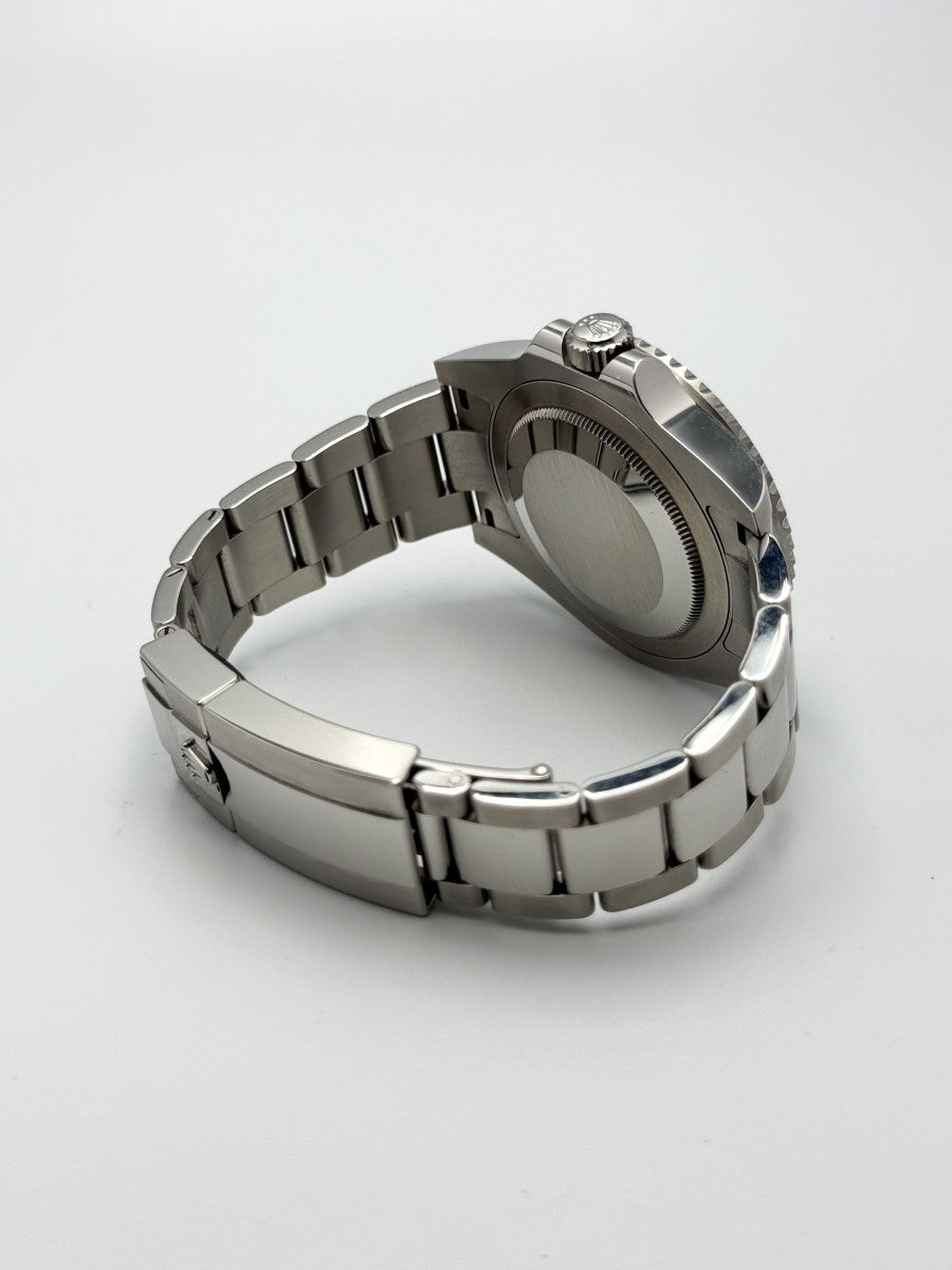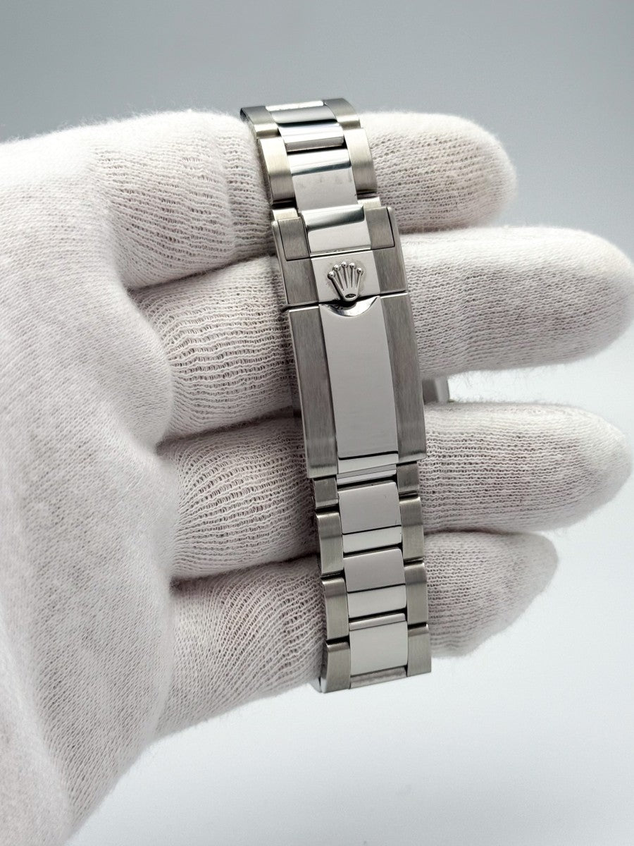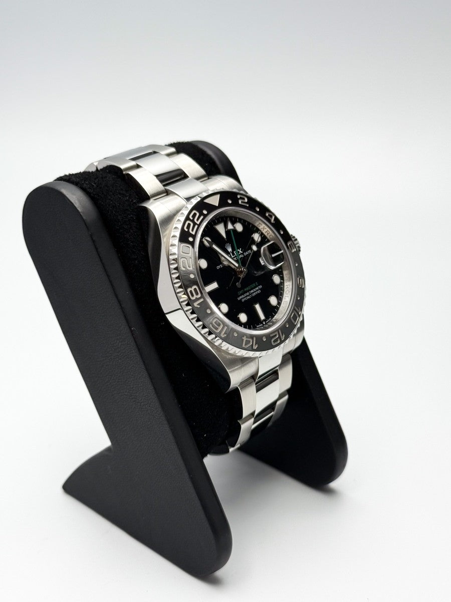 Il GMT-Master II - (Bruce Wayne) è un'autentica opera d'arte dell'orologeria, un simbolo di eleganza senza tempo e di sofisticazione. Con un diametro di 40 mm, la sua cassa in acciaio inossidabile offre una resistenza eccezionale, mentre la ghiera in ceramica nera e verde non solo esalta la sua estetica, ma garantisce anche una durata superiore. Il quadrante nero, con i suoi indici luminescenti, cattura l'attenzione offrendo una visibilità impeccabile in ogni condizione di luce. Il raffinato bracciale Oyster, con chiusura déployante, non solo assicura una vestibilità perfetta, ma sottolinea anche l’attenzione al dettaglio che caratterizza ogni creazione Rolex. Indossare questo orologio significa non solo segnare il tempo, ma farlo con stile e autorità.