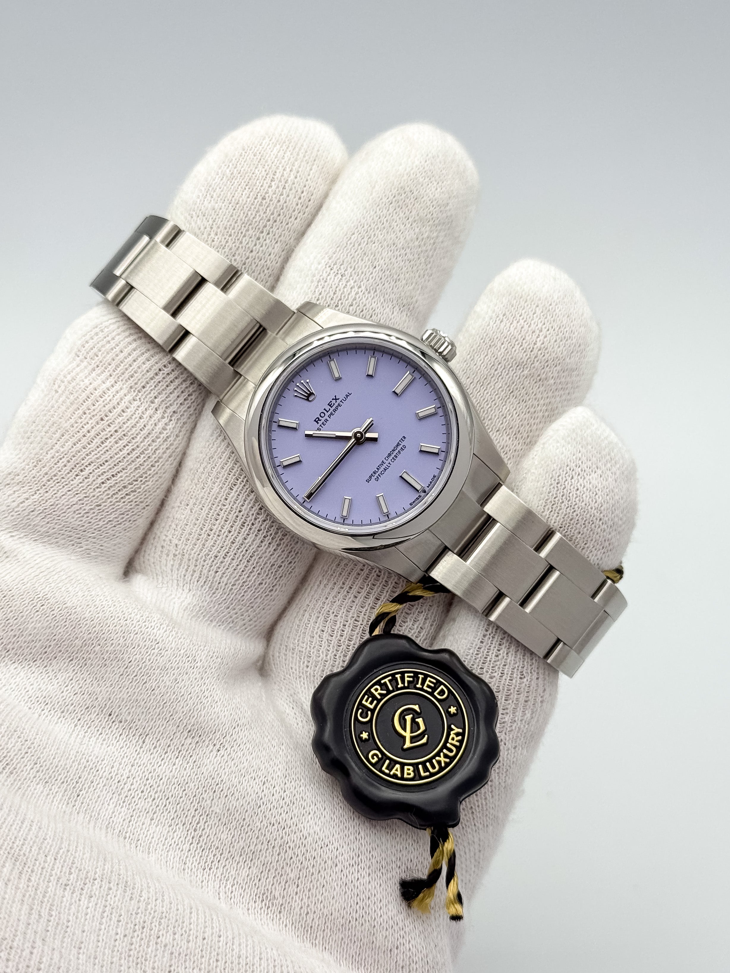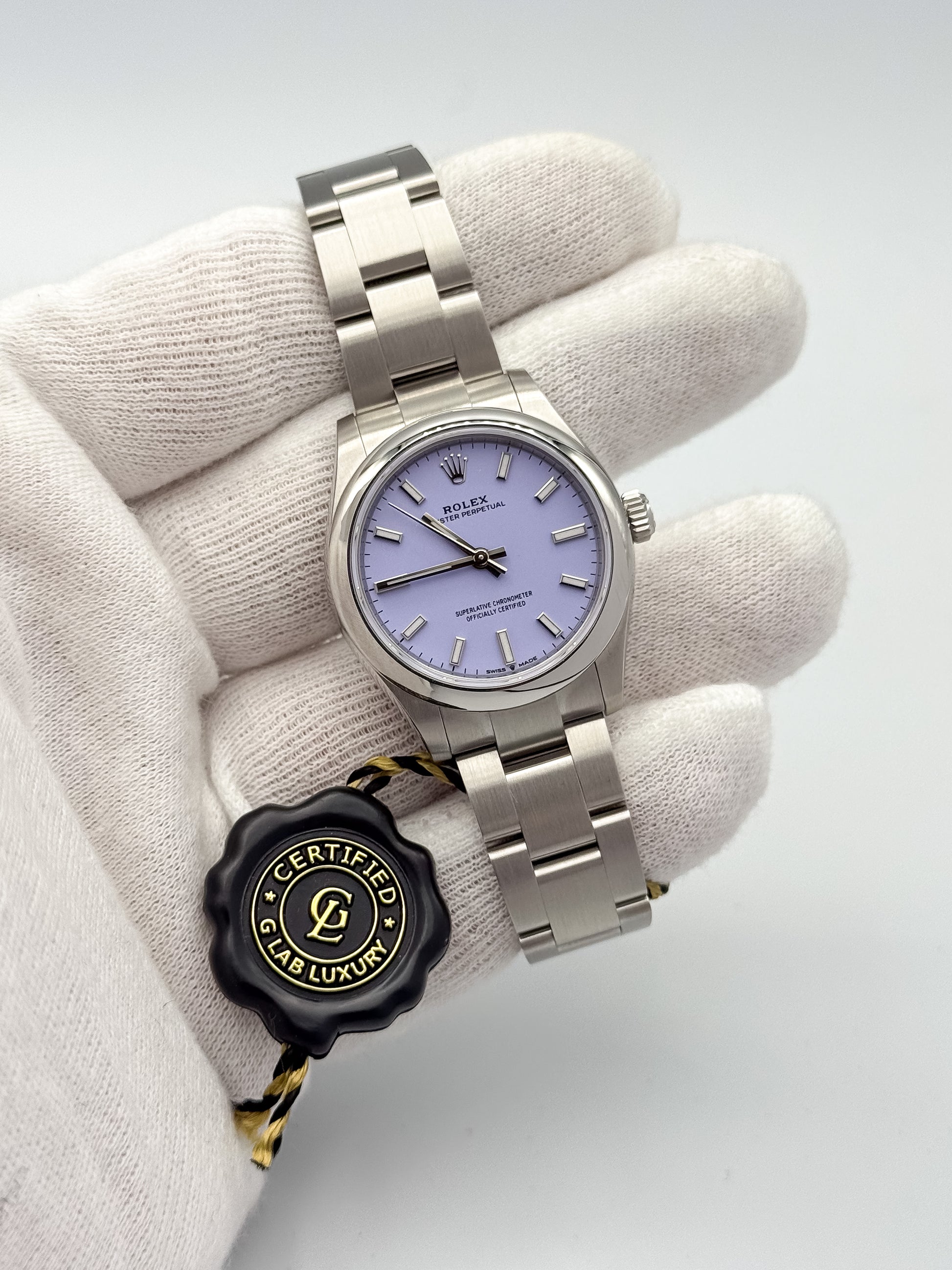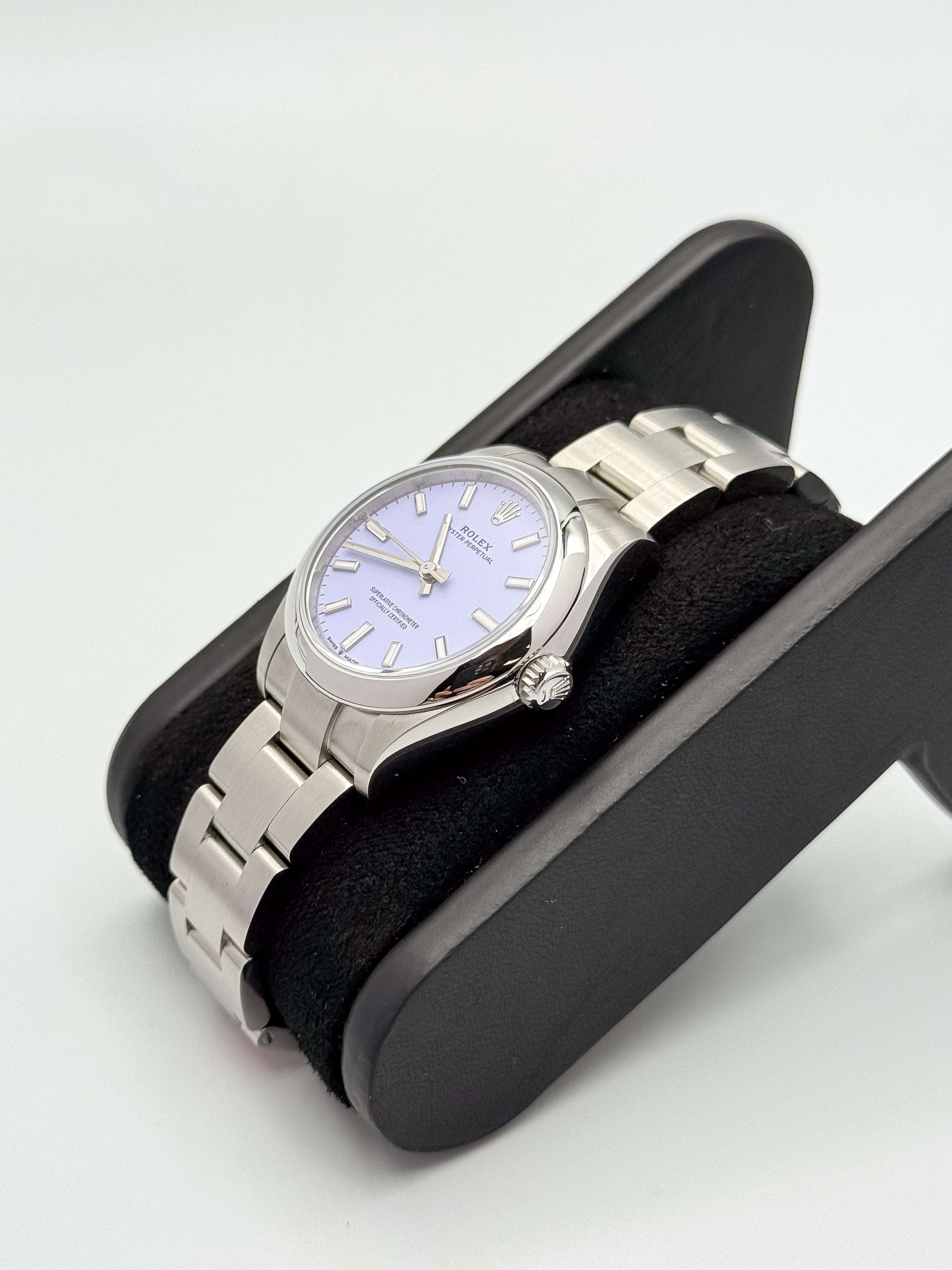 Oyster Perpetual 277200 (nuovo): un'opera di ingegneria orologiera con quadrante lavanda che esprime sofisticazione senza compromessi. La cassa da 31mm, proporzione ideale tra eleganza e praticità, racchiude il movimento automatico Perpetual, simbolo di affidabilità Rolex. Ogni dettaglio riflette la dedizione svizzera alla perfezione: cassa Oyster impermeabile, cristallo zaffiro antigraffio, movimento cronometrico certificato. Un investimento in qualità costruttiva e valore temporale, destinato a chi comprende l'importanza della meccanica orologiera autentica.