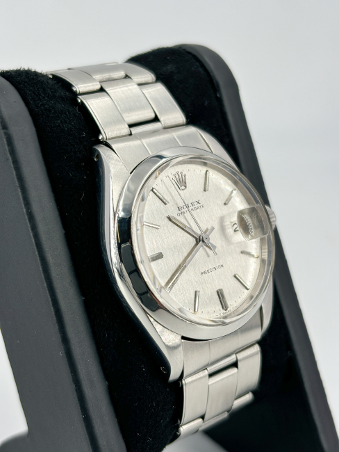 Scoprite l’essenza dell’eleganza senza tempo con il modello Precision, referenza 6694. Questo orologio, realizzato in pregiato acciaio, si distingue per la sua cassa da 34mm, perfettamente bilanciata per adattarsi a ogni polso con una grazia innata. Il quadrante grigio, sobrio e sofisticato, cattura la luce in un modo unico, rendendo ogni colpo d’occhio un’esperienza visiva eccezionale. La ghiera liscia conferisce un ulteriore tocco di raffinatezza, mentre il bracciale Oyster, simbolo di robustezza e stile, assicura che ogni movimento sia accompagnato da comfort e classe. La chiusura déployante garantisce una vestibilità sicura, permettendo a chi lo indossa di affrontare ogni occasione con disinvoltura e sicurezza. Precision non è solo un orologio, ma un’affermazione di stile e distinzione.