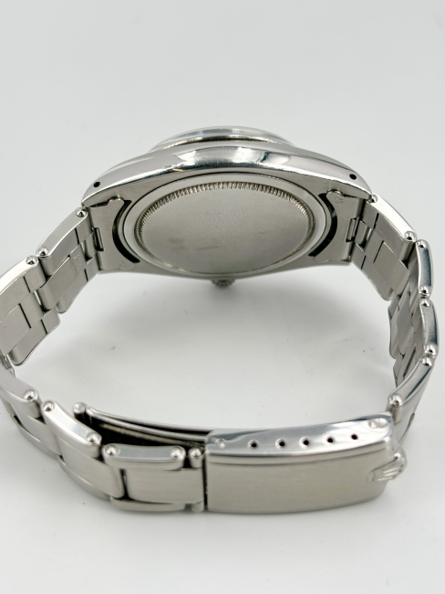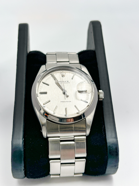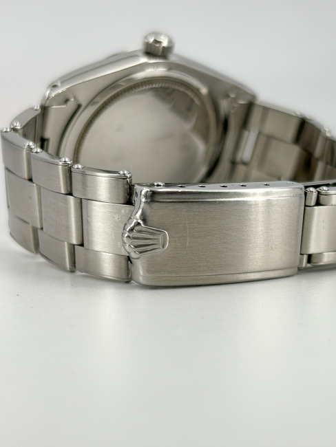 Il modello Precision 6694 incarna l’essenza di un’eleganza senza tempo, perfetta per l’uomo moderno che cerca un accessorio distintivo e raffinato. La cassa di 34 mm, realizzata in acciaio di alta qualità, si distingue per la sua finitura impeccabile che cattura la luce in modo straordinario, mentre la ghiera liscia aggiunge un tocco di sobria sofisticatezza. Il quadrante grigio, con il suo design minimalista, diventa il palcoscenico ideale per l’indicatore del tempo, un equilibrio perfetto tra funzionalità e stile. Completa il tutto il bracciale Oyster, simbolo di robustezza e comfort, dotato di una chiusura déployante che garantisce una vestibilità sicura e gradevole. Precision è più di un orologio: è un’affermazione di classe e raffinatezza.
