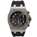 Il Royal Oak Offshore Chronograph rappresenta l'apice dell'orologeria contemporanea, un perfetto connubio tra eleganza e sportività. Con un diametro di 42 mm, la sua cassa in acciaio inossidabile rivela un design audace e distintivo, mentre il quadrante nero, arricchito da dettagli in rilievo e indicatori luminescenti, conferisce un tocco di sofisticata modernità. Ogni sguardo al suo quadrante è un invito a esplorare il tempo con stile e precisione. Il bracciale in gomma, oltre a garantire comfort e vestibilità ottimale, sottolinea il carattere dinamico di questo modello, rendendolo ideale sia per l'uso quotidiano che per le occasioni più esclusive. Con una chiusura a fibbia che assicura praticità e sicurezza, il Royal Oak Offshore è un compagno fidato per l'uomo moderno, amante del lusso e dell'avventura.