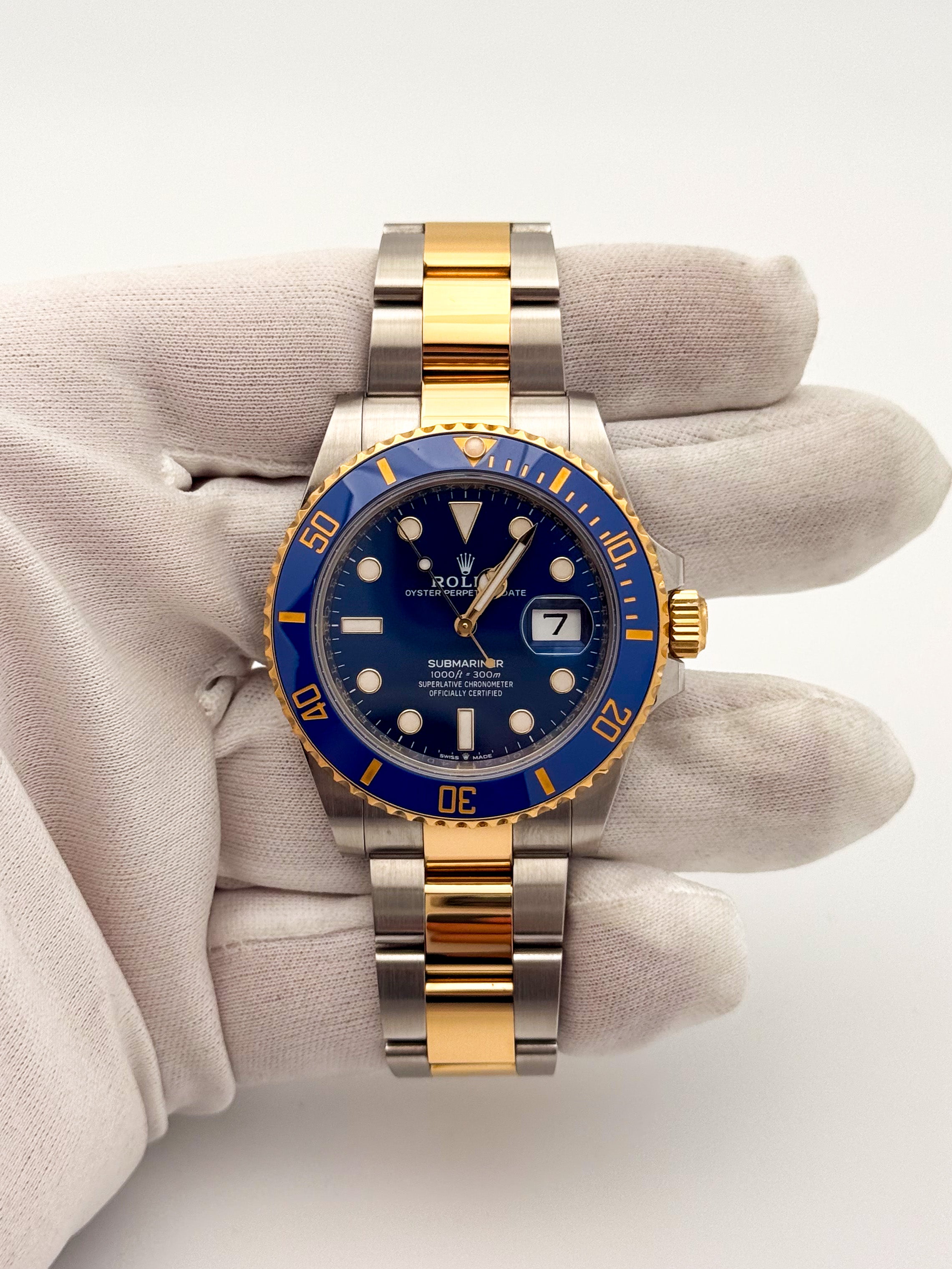 Scoprite l'incanto senza tempo del Rolex Submariner 126613LB, un simbolo di eleganza e prestazioni senza pari. Con una cassa robusta di 41 mm, questo orologio rappresenta la fusione perfetta tra maestria artigianale e innovazione tecnologica. La ghiera in ceramica blu, raffinata e resistente ai graffi, accompagna un quadrante blu scintillante, che cattura la luce ad ogni movimento, rendendo ogni istante un'opera d'arte. Realizzato in un pregiato mix di oro e acciaio, il Submariner non solo incarna il lusso, ma offre anche la durabilità necessaria per affrontare le sfide quotidiane. Il bracciale Oyster, con chiusura déployante, assicura una vestibilità perfetta, regalando un connubio di comfort e stile in ogni occasione.