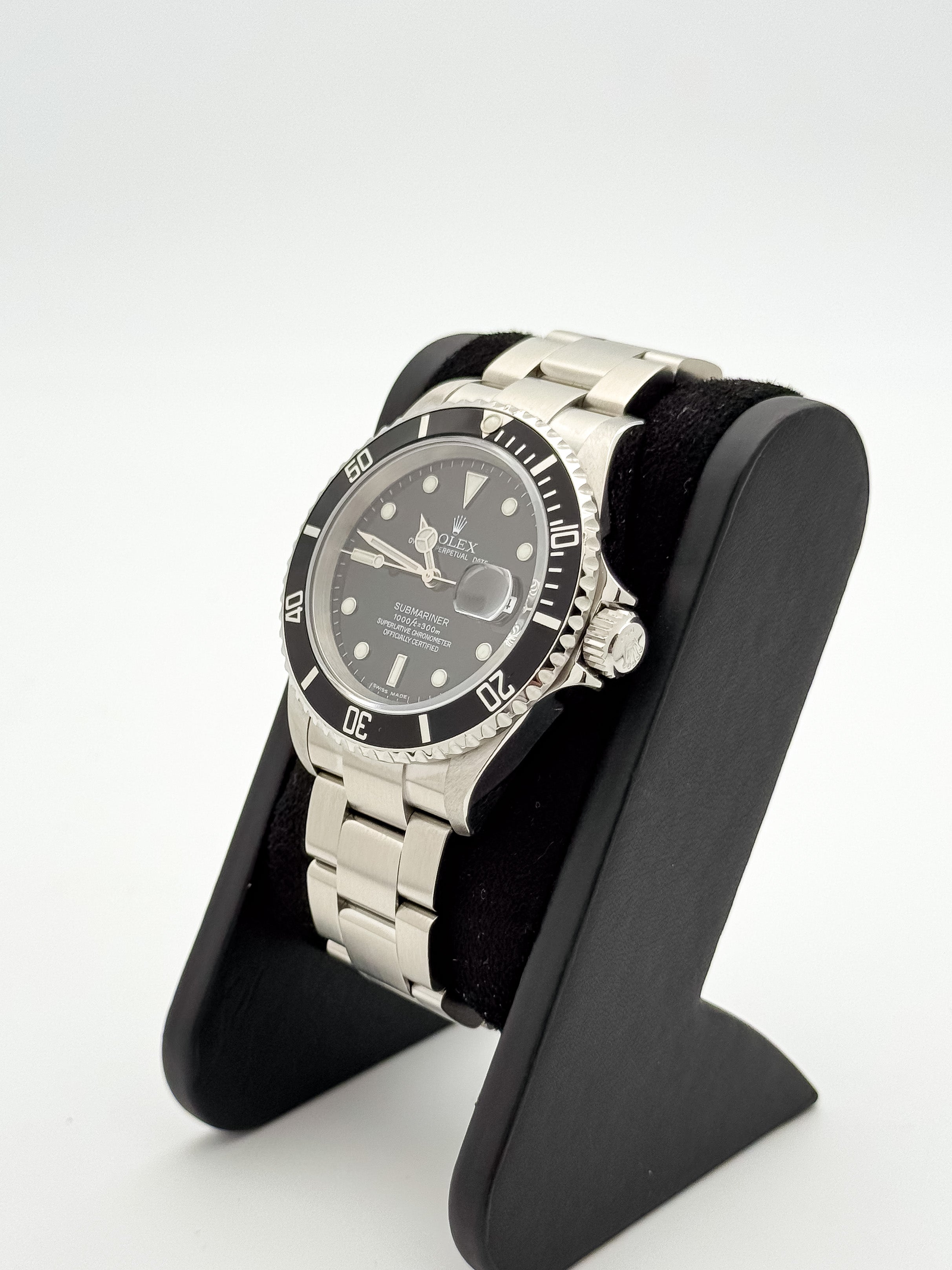 L'orologio Submariner 16610 rappresenta un capolavoro dell'orologeria svizzera, simbolo di precisione e eleganza senza tempo. Questo modello combina una cassa in acciaio inossidabile con un movimento meccanico affidabile, caratterizzato da una ghiera girevole unidirezionale che garantisce la massima sicurezza durante le immersioni. Il quadrante nero con indici luminosi assicura una lettura impeccabile in qualsiasi condizione di luce, mentre il cristallo zaffiro resistente ai graffi protegge il quadrante. Impermeabile fino a 300 metri, questo orologio è ideale sia per gli appassionati di diving che per chi apprezza l'eccellenza tecnica nel quotidiano. Un investimento in qualità e stile che trascende le mode.